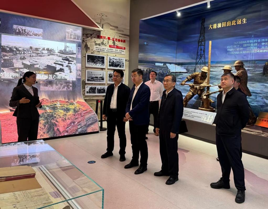 在中國海油天津分公司,王進(jìn)富一行在油田常務(wù)副總經(jīng)理張春生(儀94屆校友)的陪同下,參觀了中國海洋石油工業(yè)陳列館(黨建文化廳),并與油田校友代表召開座談會。