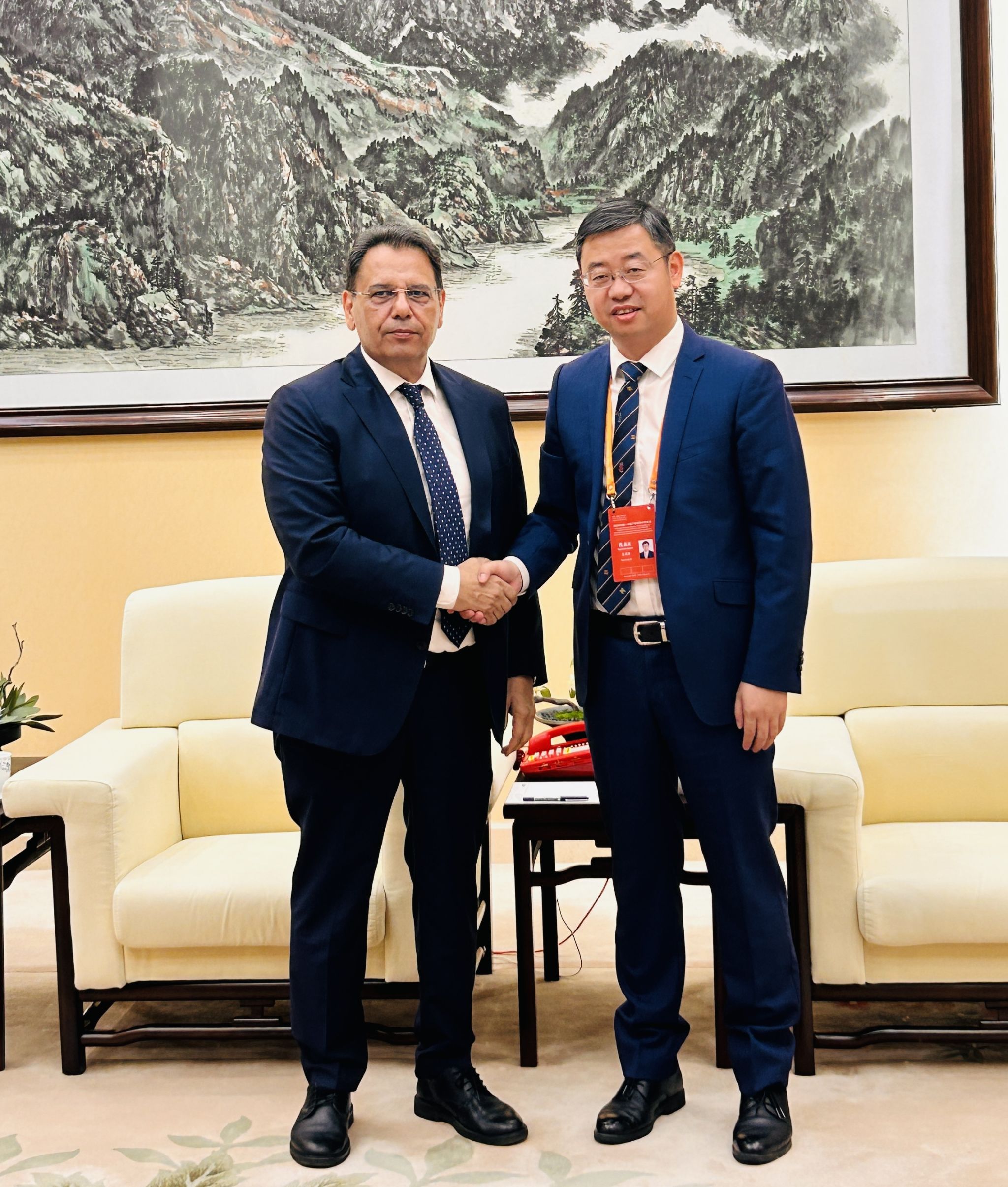 在2025中國—中亞產(chǎn)學研用合作會議期間,王進富與來華出席此次會議的烏茲別克斯坦高等教育、科學與創(chuàng)新部部長孔格拉特拜·沙里波夫(Sharipov Kongratbay)會晤。雙方就我校烏茲別克斯坦分校建設(shè)工作進行了深入交流。