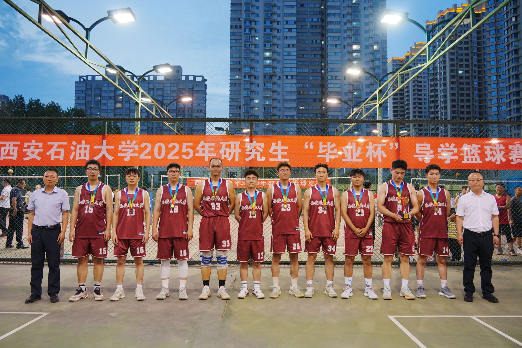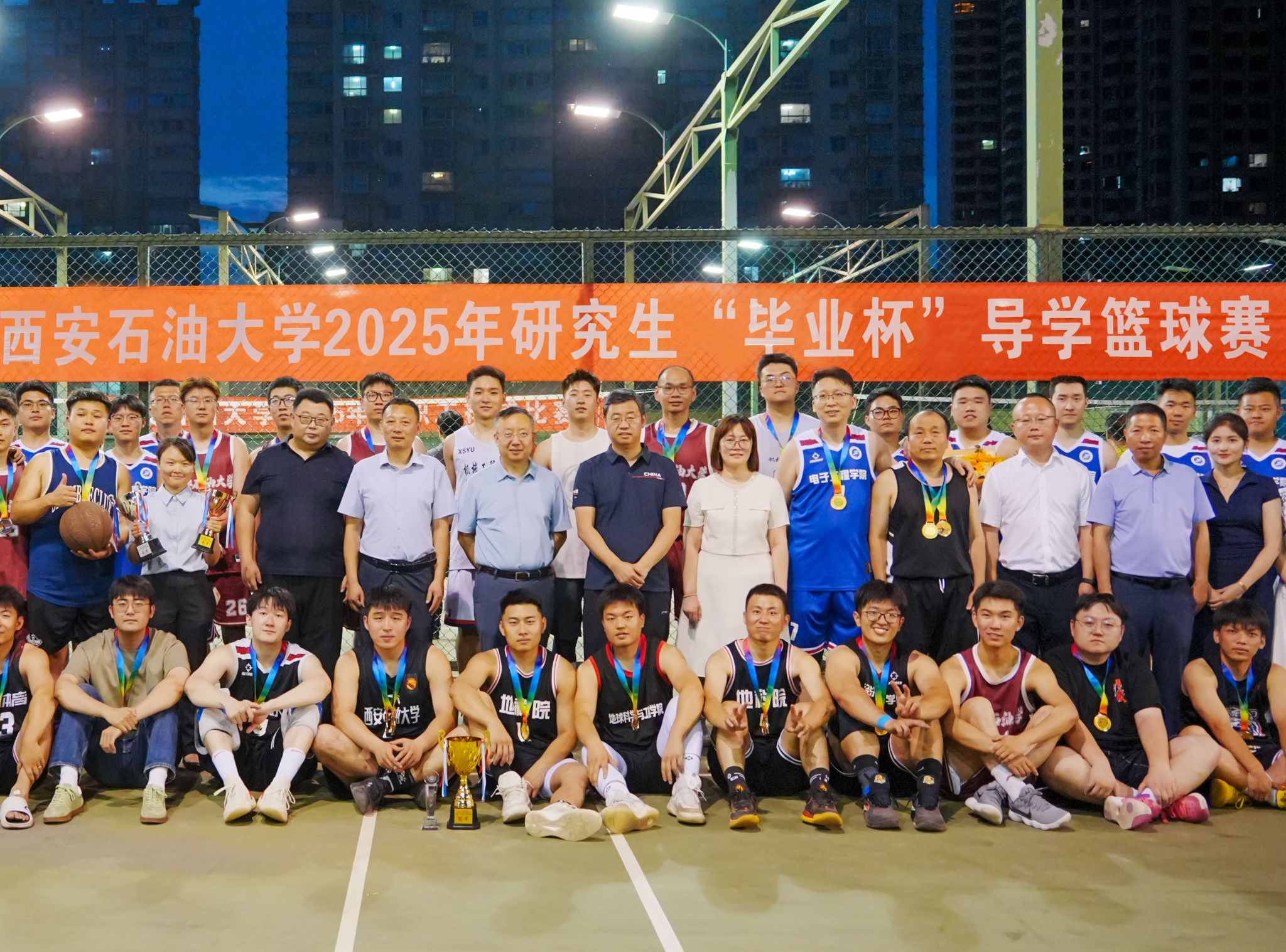 6月5日下午,西安石油大學(xué)2025年研究生“畢業(yè)杯”導(dǎo)學(xué)籃球賽閉幕式暨頒獎(jiǎng)典禮在雁塔校區(qū)籃球場(chǎng)舉行。校長(zhǎng)王進(jìn)富、副校長(zhǎng)種宇宏出席閉幕頒獎(jiǎng)儀式。研究生工作部、研究生院、團(tuán)委、體育學(xué)院負(fù)責(zé)人與參賽師生共同見證頒獎(jiǎng)榮耀時(shí)刻。