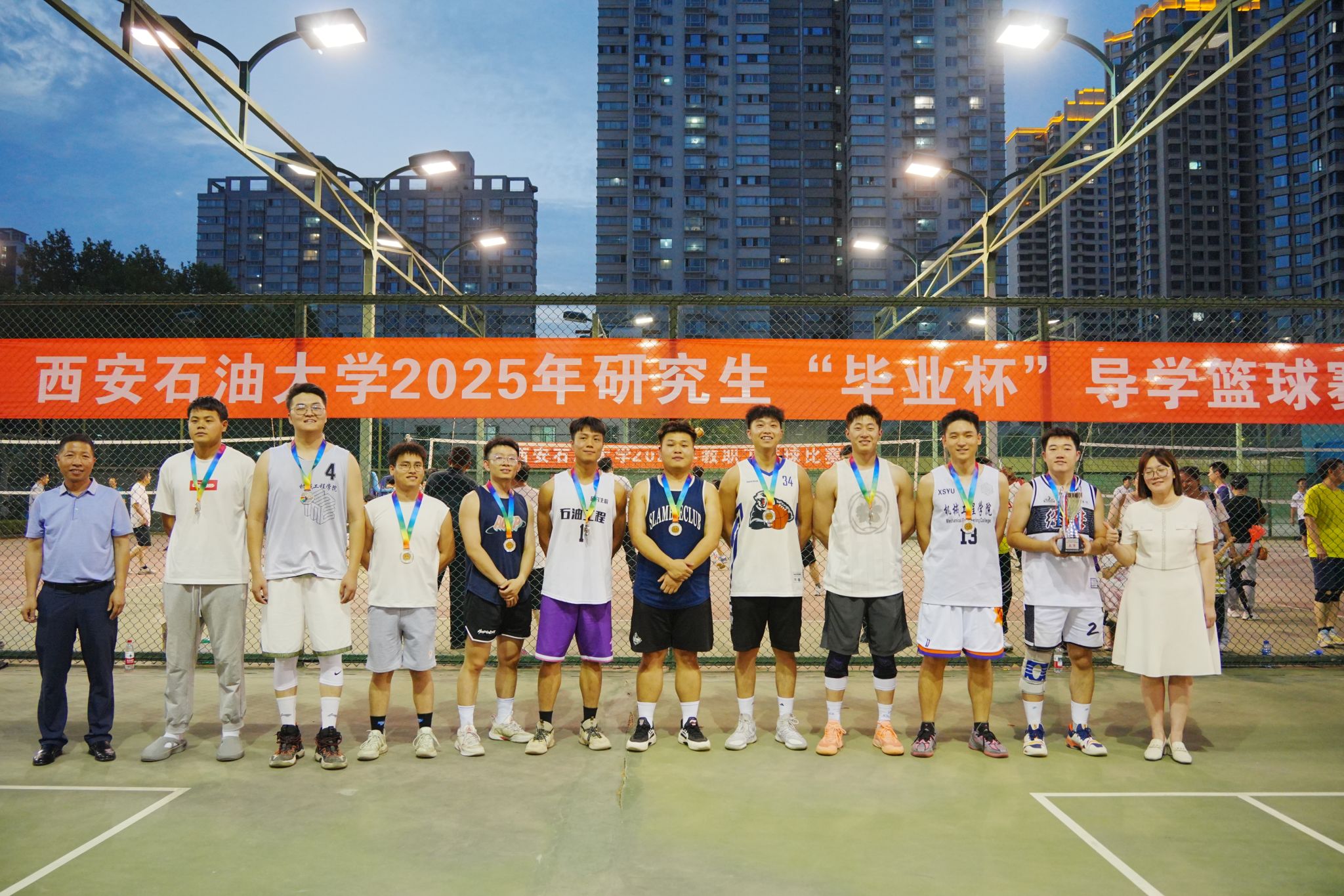 隨著全體獲獎(jiǎng)?wù)吲c領(lǐng)導(dǎo)嘉賓合影留念,這場(chǎng)承載著導(dǎo)學(xué)情誼與青春記憶的籃球盛宴圓滿落幕。賽場(chǎng)上的每一次奔跑、每一聲吶喊,都將成為畢業(yè)生們奔赴人生新賽場(chǎng)的動(dòng)力源泉。
