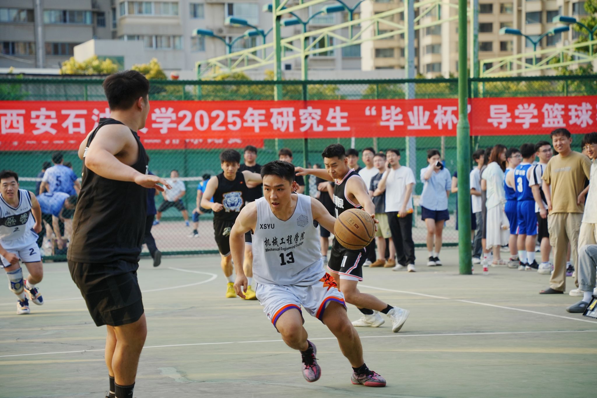 “畢業(yè)杯”導(dǎo)學(xué)籃球賽為研究生工作部精心策劃的畢業(yè)季系列活動(dòng)之一,是深化導(dǎo)學(xué)關(guān)系、展示研究生綜合素質(zhì)的重要平臺(tái),旨在通過體育競(jìng)技傳遞“健康第一、全面發(fā)展”的教育理念,激發(fā)研究生創(chuàng)新活力,培養(yǎng)團(tuán)結(jié)協(xié)作精神,為畢業(yè)生留下難忘的校園記憶,激勵(lì)廣大研究生以更飽滿的熱情投身學(xué)術(shù)研究與國(guó)家建設(shè)。