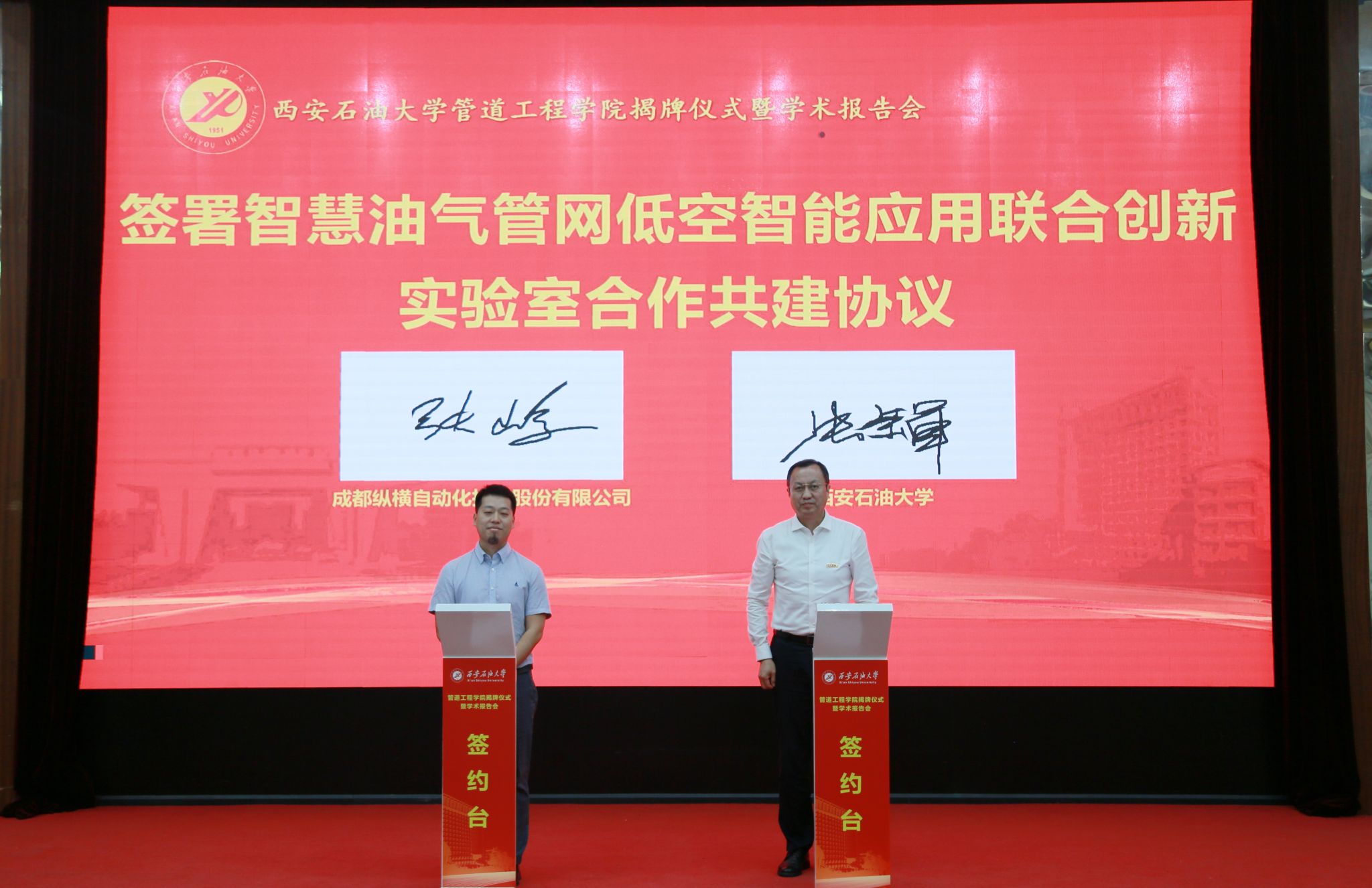 會上,楊立龍副書記,常江書記共同為“西安石油大學(xué)管道工程學(xué)院”揭牌。