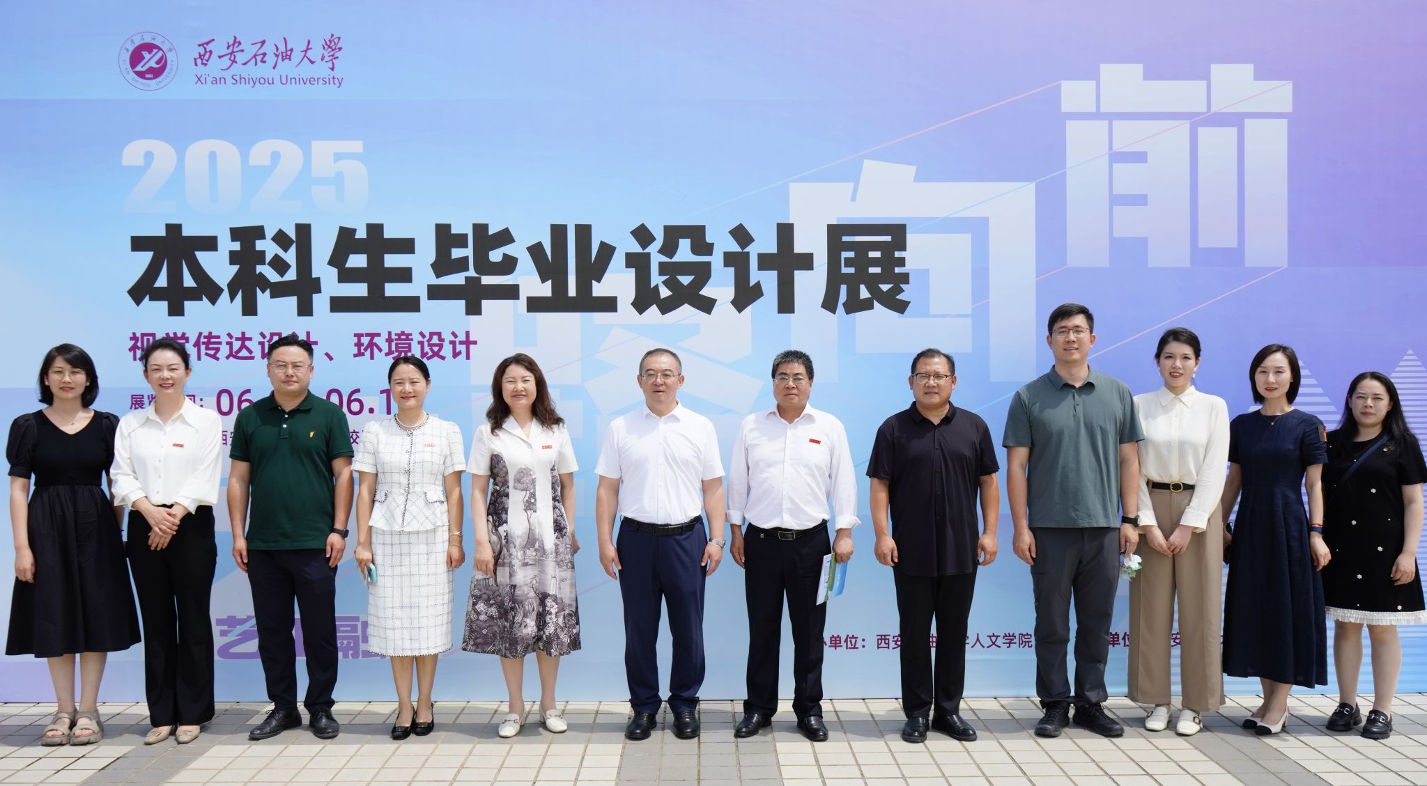 2025年6月9日上午,人文學(xué)院“藝路向前?藝工融合”2025年視覺傳達(dá)設(shè)計、環(huán)境設(shè)計專業(yè)本科生畢業(yè)設(shè)計作品展開幕式在鄠邑校區(qū)圖書館順利舉行,校黨委書記常江出席開幕式。西安市美術(shù)家協(xié)會策展專業(yè)委員會副主任劉中山;澄城縣堯頭窯園區(qū)管理委員會宣教部部長田樂樂、經(jīng)營發(fā)展部經(jīng)理張琳麗;校圖書館館長李濤、西安石大資產(chǎn)經(jīng)營有限公司總經(jīng)理王曉、學(xué)生工作部副部長馬小剛、人文學(xué)院領(lǐng)導(dǎo)班子、全體畢業(yè)設(shè)計指導(dǎo)教師和畢業(yè)生約200人參加開幕式。