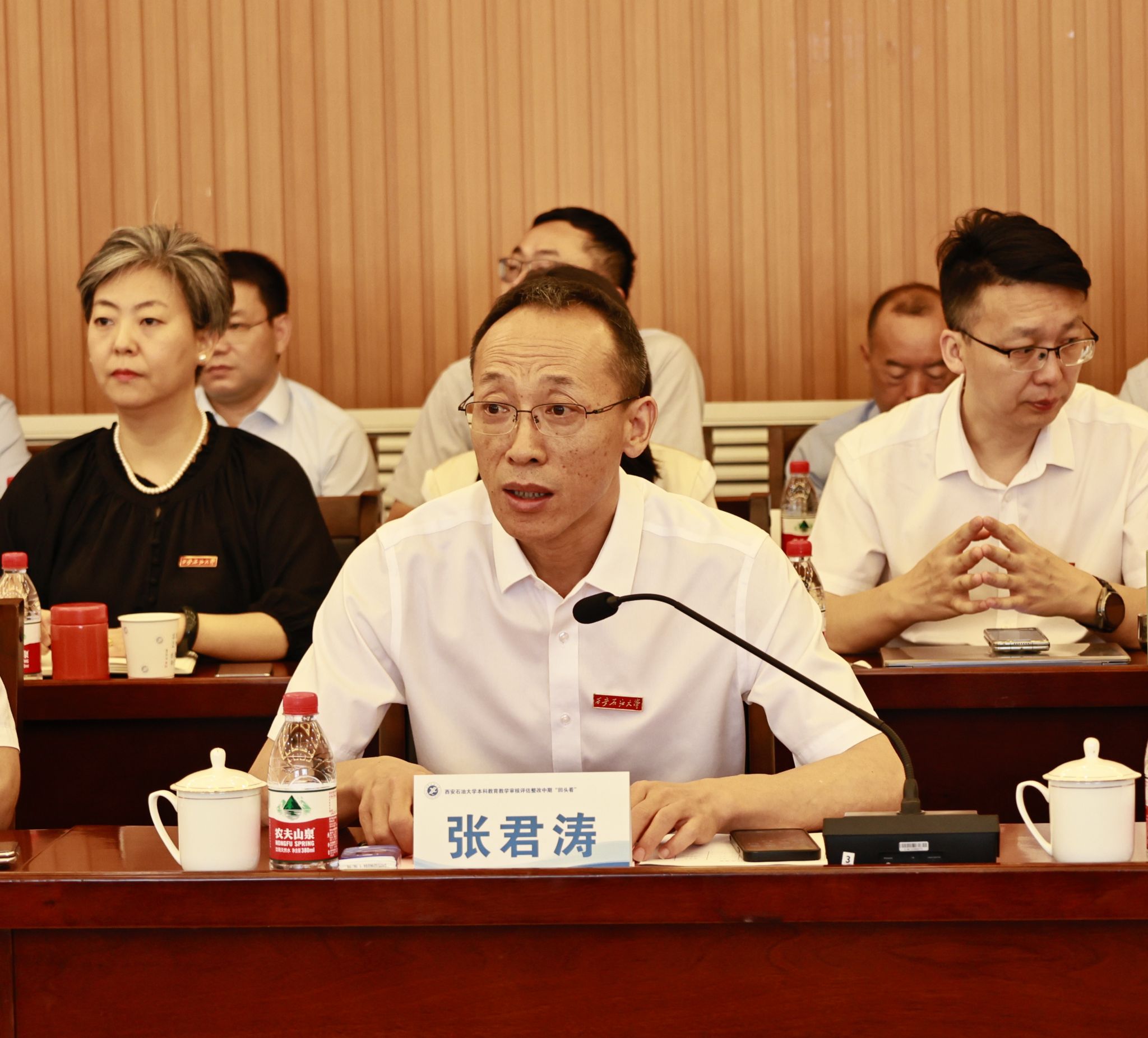 校長王進(jìn)富代表學(xué)校作審核評估整改工作中期進(jìn)展匯報(bào)。他從整改的頂層設(shè)計(jì)與思路、整改舉措與成效、存在問題與改進(jìn)等三個方面,系統(tǒng)介紹了學(xué)校教育教學(xué)改革、整改推進(jìn)情況與計(jì)劃。他表示,學(xué)校始終堅(jiān)守“為黨育人、為國育才”初心使命,全面落實(shí)立德樹人根本任務(wù),按照審核評估整改要求,結(jié)合第三次黨代會確定的“六大行動”,聚焦審核評估專家組提出的五個方面的問題,落實(shí)教育科技人才體制機(jī)制一體改革要求,制定了“1+10”的高質(zhì)量發(fā)展方案,推進(jìn)育人方式、辦學(xué)模式、管理體制、保障機(jī)制四個方面的全面提升。整改一年來,學(xué)校育人方式不斷革新、學(xué)科平臺建設(shè)成效顯著、教師隊(duì)伍不斷優(yōu)化、合作辦學(xué)提級加速、學(xué)校治理效能明顯提升。學(xué)校將以此次中期“回頭看”考查工作為新起點(diǎn),認(rèn)真聽取,充分吸納專家組意見,立足當(dāng)前,謀劃長遠(yuǎn),在本科專業(yè)動態(tài)調(diào)整機(jī)制、師資隊(duì)伍建設(shè)、數(shù)智賦能本科教育教學(xué)條件保障等工作上重點(diǎn)發(fā)力、持續(xù)用力,在持續(xù)深化改革過程中全面完成整改任務(wù)。