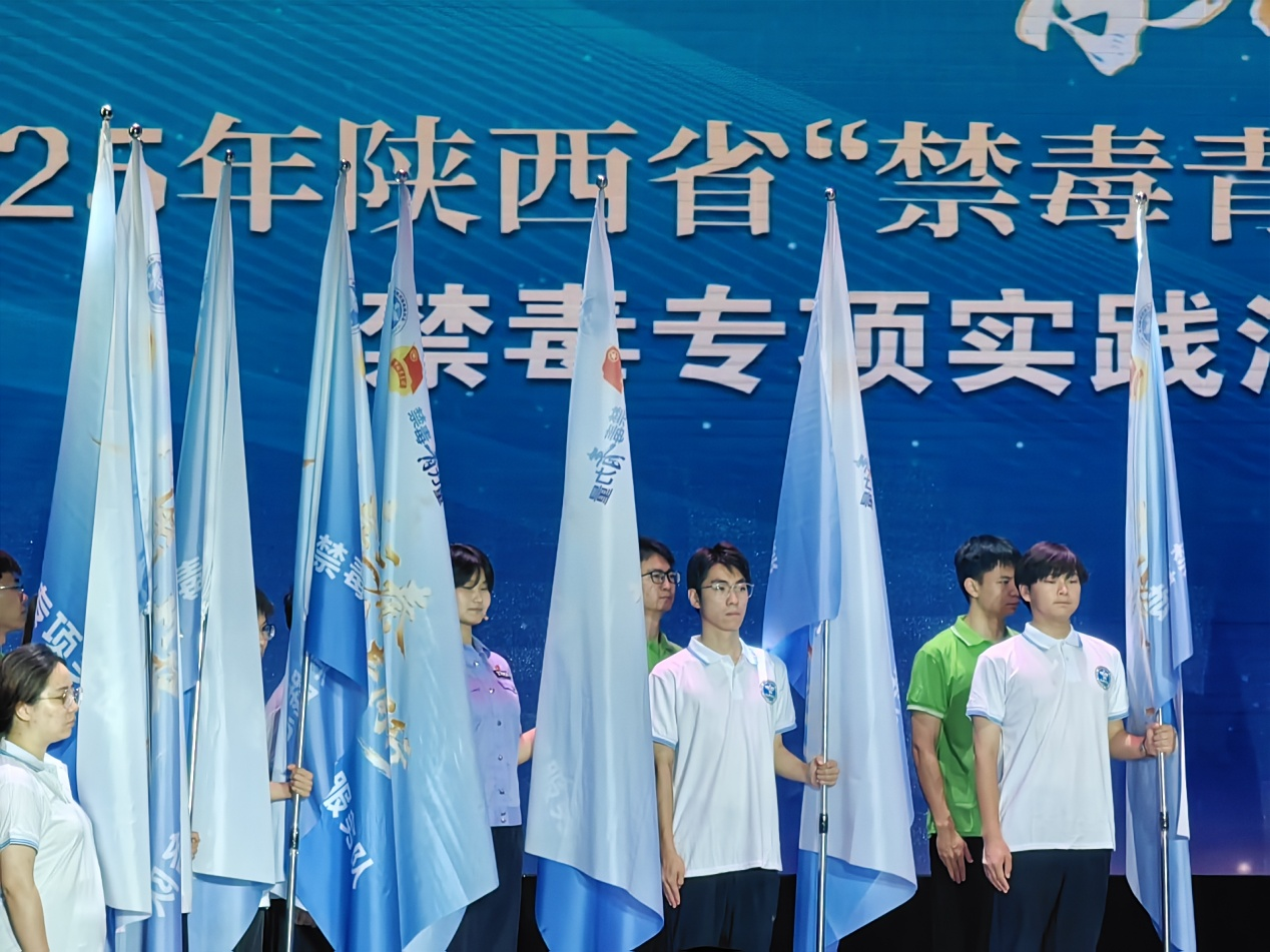 本次活動通過科技、藝術(shù)與傳統(tǒng)文化相結(jié)合的創(chuàng)新形式,全方位展現(xiàn)陜西省禁毒工作成果,號召全社會特別是青少年群體積極參與禁毒行動,共同守護(hù)“無毒三秦”。作為禁毒宣傳的骨干力量,來自全省21所高校的禁毒實踐團(tuán)代表在現(xiàn)場接受了“禁毒青力量”2025年大學(xué)生暑期“三下鄉(xiāng)”社會實踐授旗,以青春誓言扛起禁毒重任。我校電子工程學(xué)院學(xué)生高楊巖錕作為代表之一,上臺接過象征使命與責(zé)任的“禁毒青力量”旗幟。