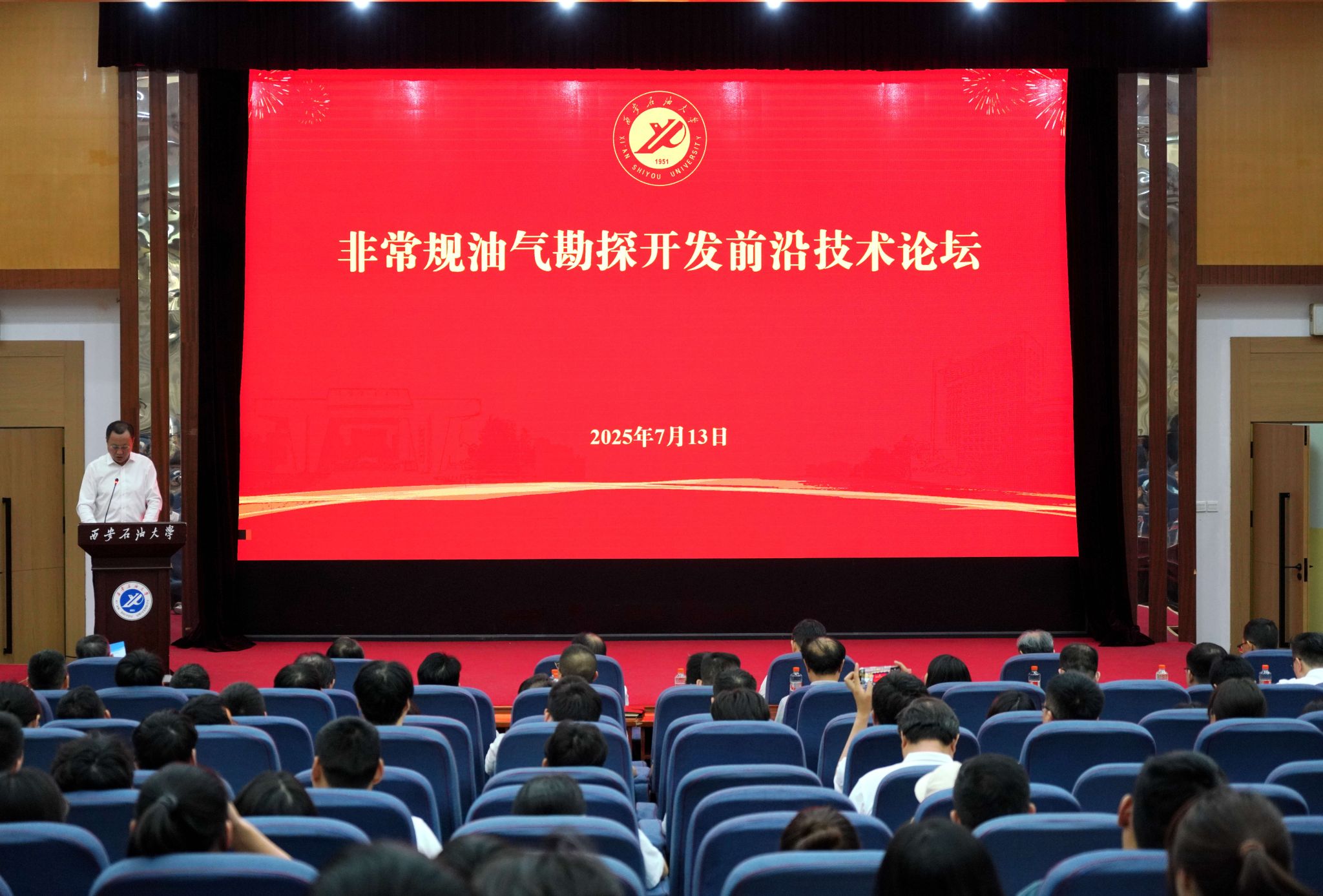開幕式上,王進富代表學校致歡迎辭。他向蒞臨論壇的各位專家學者表示熱烈歡迎和崇高敬意。他談到,西安石油大學長期扎根西部,堅持服務鄂爾多斯盆地,始終與國家能源戰(zhàn)略同頻共振,在非常規(guī)油氣領域已構建起從基礎理論研究到關鍵技術研發(fā)、工程應用服務的完整學科鏈和科研創(chuàng)新體系。他指出,非常規(guī)油氣資源已成為保障國家能源安全的戰(zhàn)略新支點,在“雙碳”目標引領的能源轉型關鍵期,深層頁巖氣高效開發(fā)、超低滲儲層經(jīng)濟有效改造等“卡脖子”難題亟待突破,人工智能、大數(shù)據(jù)等新一代信息技術對傳統(tǒng)勘探開發(fā)模式的革新刻不容緩,本次論壇的舉辦,旨在匯聚行業(yè)智慧,以前沿技術和創(chuàng)新思維共同探索破解之道,為中國能源事業(yè)注入西石大力量。