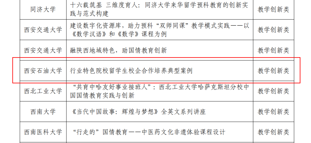 近年來(lái),我校高度重視國(guó)際化人才培養(yǎng)工作,先后與中塔天然氣管道公司、中吉天然氣管道公司等聯(lián)合開(kāi)展人才培養(yǎng)項(xiàng)目,形成了較為成熟的校企聯(lián)合培養(yǎng)模式與協(xié)同育人機(jī)制。此次入選典型案例,充分體現(xiàn)了我校在來(lái)華留學(xué)教育領(lǐng)域的創(chuàng)新成果和示范價(jià)值。未來(lái),我校將以本次典型案例入選為契機(jī),持續(xù)深化來(lái)華留學(xué)教學(xué)改革與研究,總結(jié)來(lái)華留學(xué)教育經(jīng)驗(yàn),進(jìn)一步提升來(lái)華留學(xué)教育質(zhì)量。