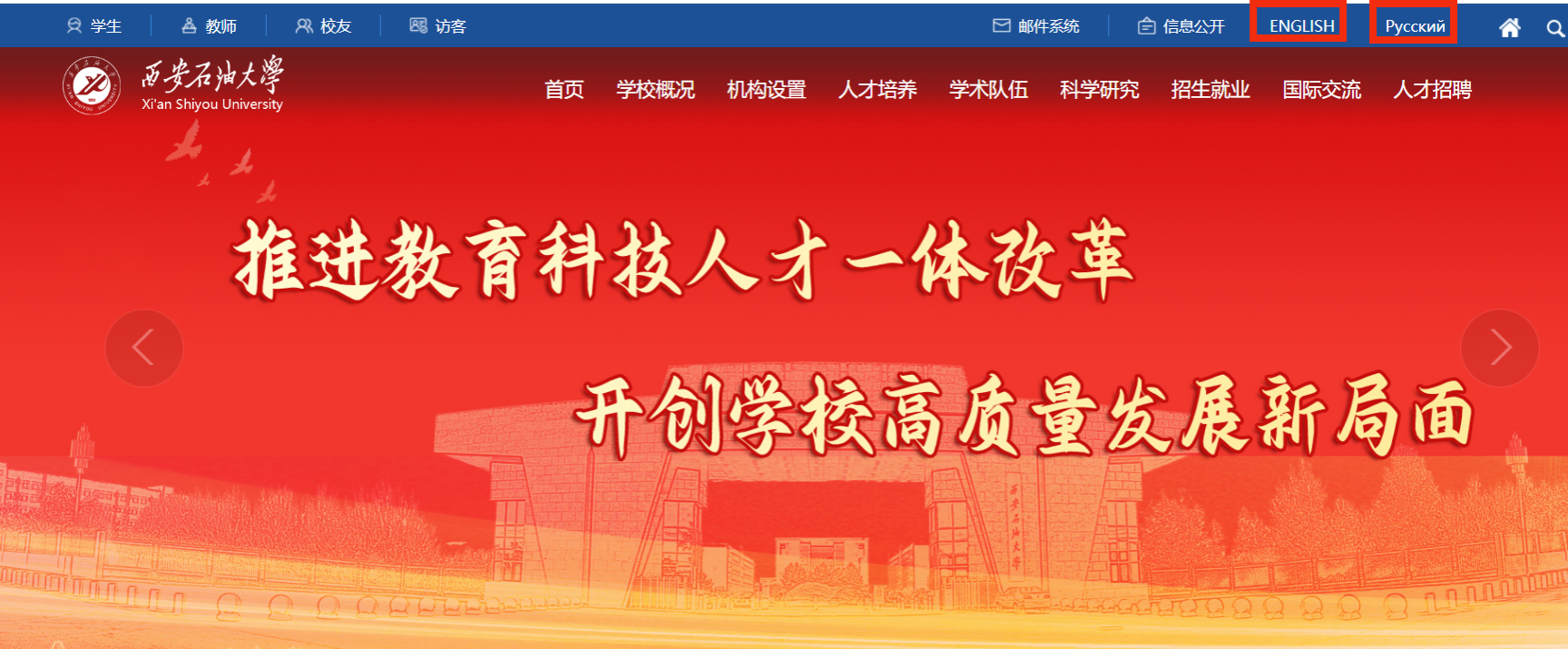 為深入服務(wù)共建“一帶一路”倡議,向全球更生動(dòng)地講述西石大故事、傳遞西石大聲音,8月17日,我校俄文網(wǎng)站正式開(kāi)通運(yùn)行,英文網(wǎng)站同步完成更新升級(jí)。