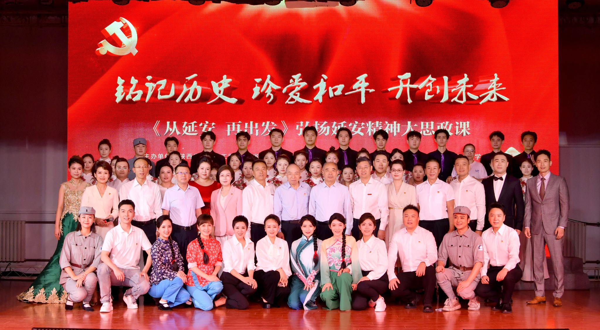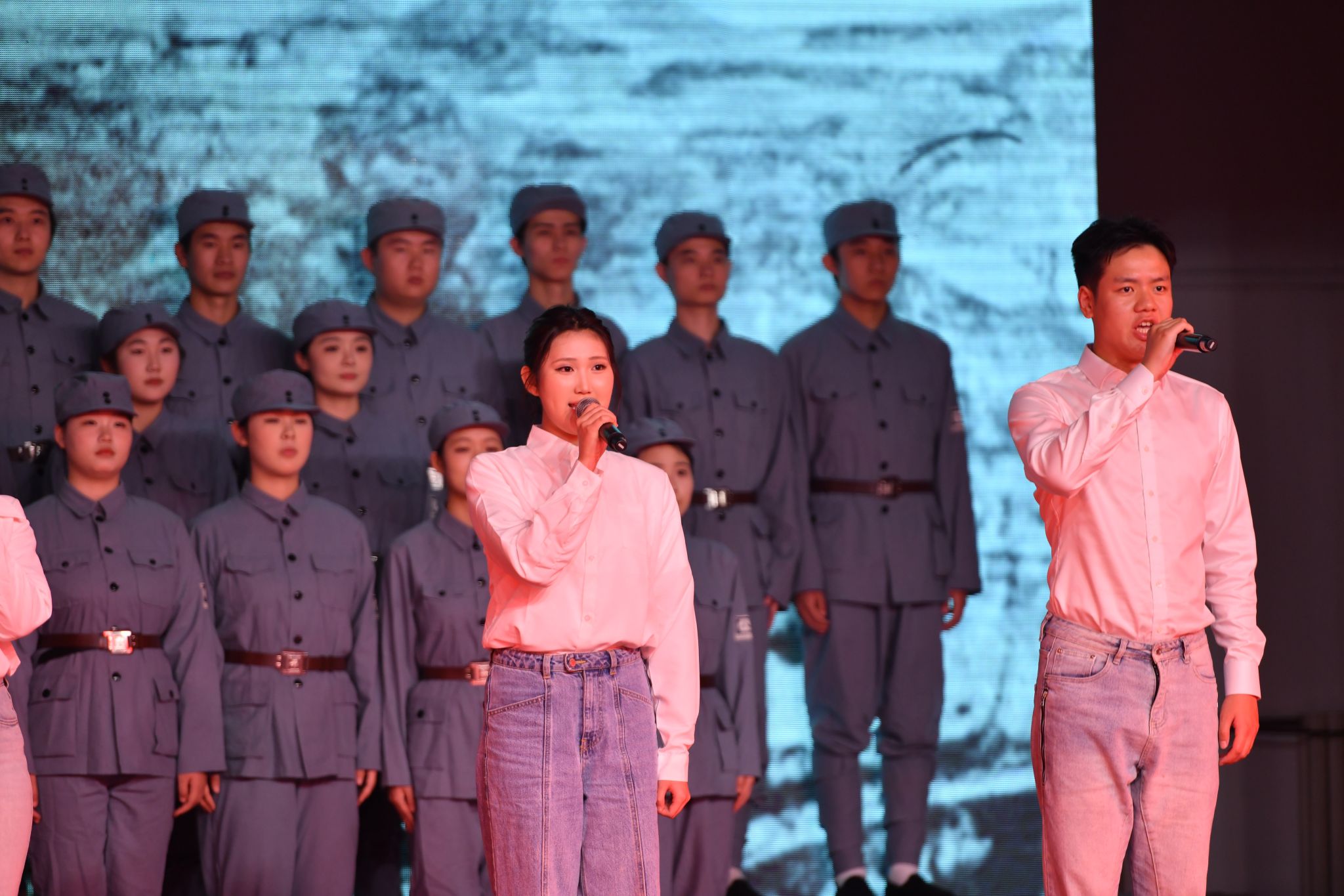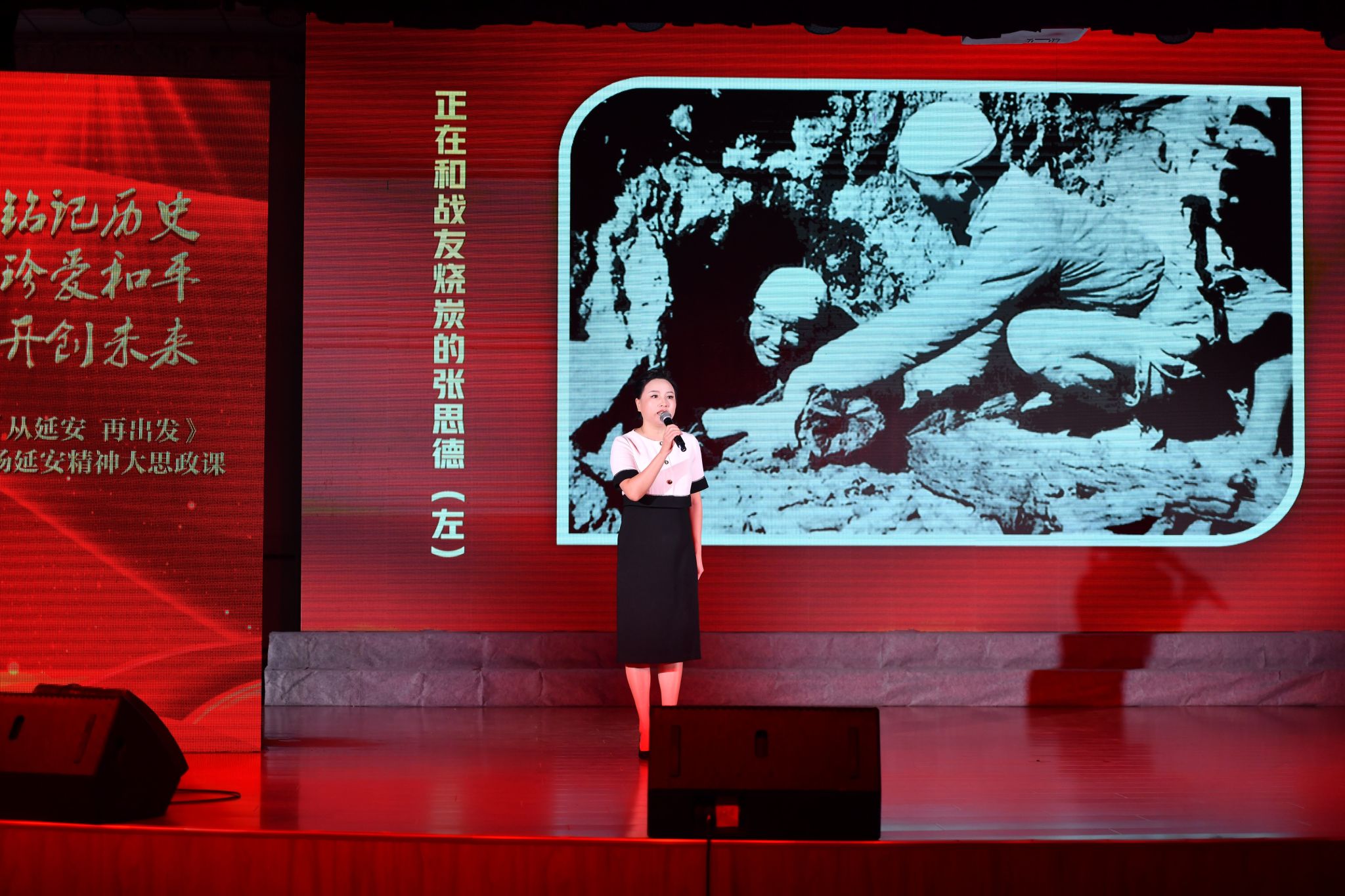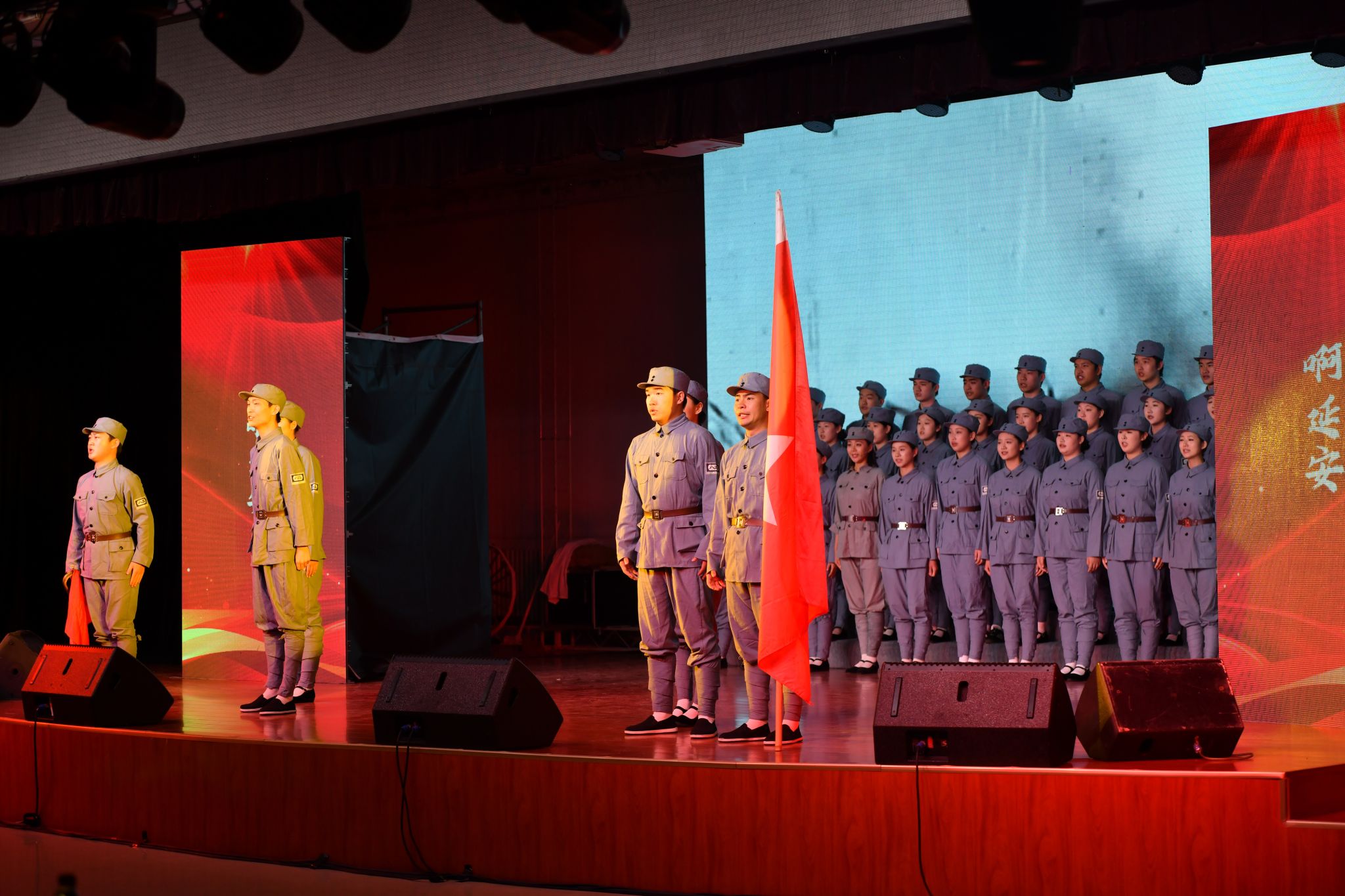 活動分為序幕、信念之路、思想之炬、為民之心、奮進之力四大篇章、尾聲,包括《延安頌》《延安窯洞有馬列主義》《全心全意為人民服務的楷?!贰额I航》等8個節(jié)目,并由4位知名專家分別圍繞“為什么中國的希望在延安”“為什么延安窯洞有馬列主義”“為什么要將為人民服務作為黨的根本宗旨寫入《中國共產(chǎn)黨章程》”“為什么習近平總書記囑托無論將來物質生活多么豐富,自力更生艱苦奮斗的精神一定不能丟”等核心問題,進行深入淺出的理論闡釋,實現(xiàn)了文藝表達與思想教育的深度融合,活動現(xiàn)場莊重熱烈,洋溢著濃厚的紅色氛圍。其中,我校音樂系教師李強、田立分別演繹了《領航》、《山丹丹開花紅艷艷》歌曲,我校合唱團以激昂的歌聲合唱了《延安頌》《領航》等曲目,傳遞出新時代青年繼承革命傳統(tǒng)、勇?lián)姑膱远ㄐ拍睢?/p>