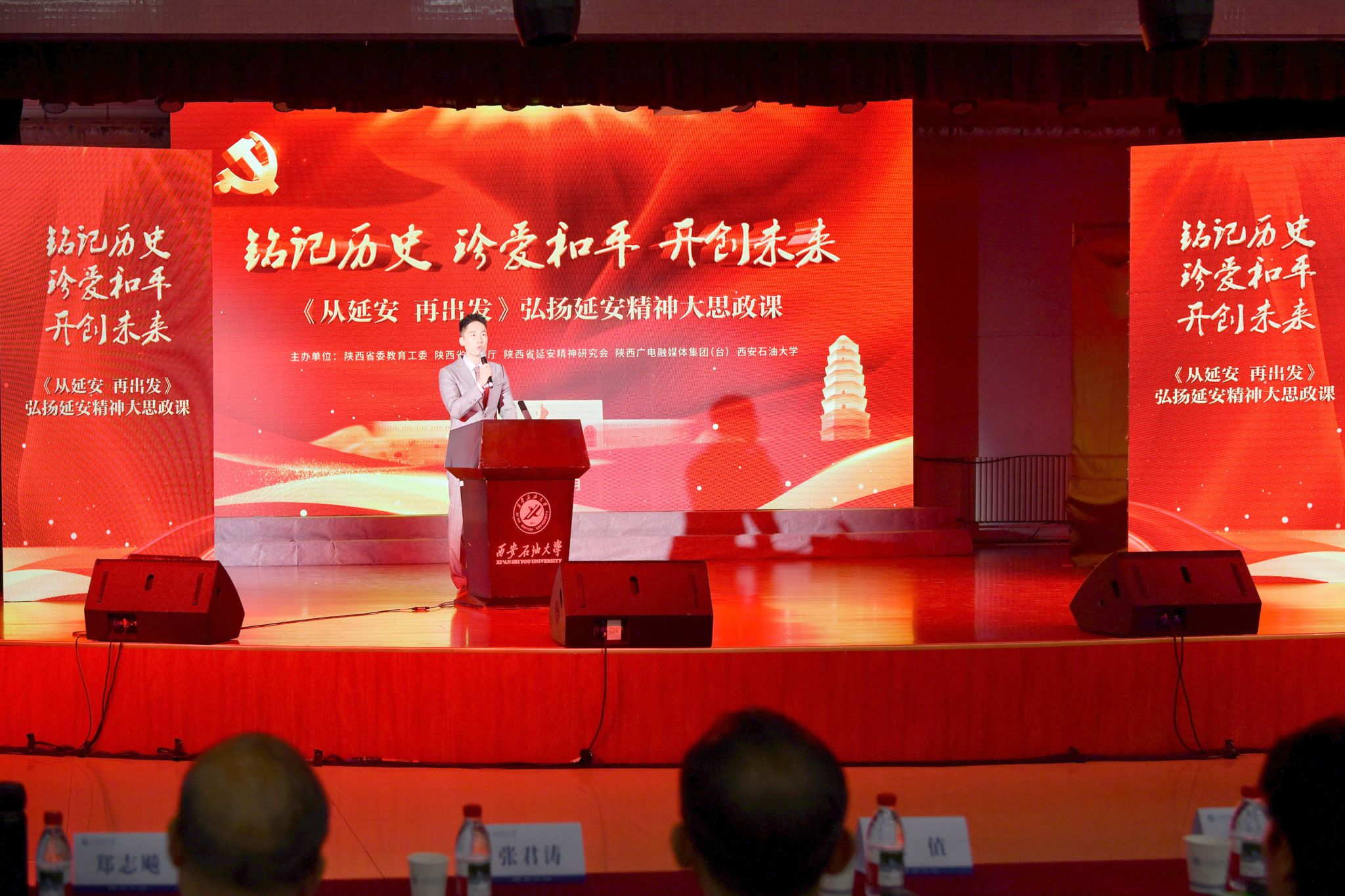 為深入貫徹落實習近平總書記關于弘揚延安精神的重要指示精神,推動延安精神進校園、進課堂、進頭腦,9月10日晚,由省委教育工委、省教育廳、省延安精神研究會、陜西廣電融媒體集團(臺)、西安石油大學聯(lián)合主辦的“從延安 再出發(fā)”弘揚延安精神開學第一堂“大思政課”首場在我校鄠邑校區(qū)騰輝活動中心舉行。陜西省延安精神研究會會長、陜西省人大常委會原副主任梁宏賢,陜西廣電融媒體集團(臺)黨委委員、副總編輯郭雄,西安市延安精神研究會會長李德文,鄠邑區(qū)委常委、區(qū)委宣傳部部長王值,我校校長王進富、校黨委副書記程永清、副校長張君濤以及師生代表出席宣講活動。“大思政課”還通過西安石油大學官微、抖音賬號等對外網(wǎng)絡直播,1.3萬余人次觀看了活動直播,點贊2.6萬余人次。