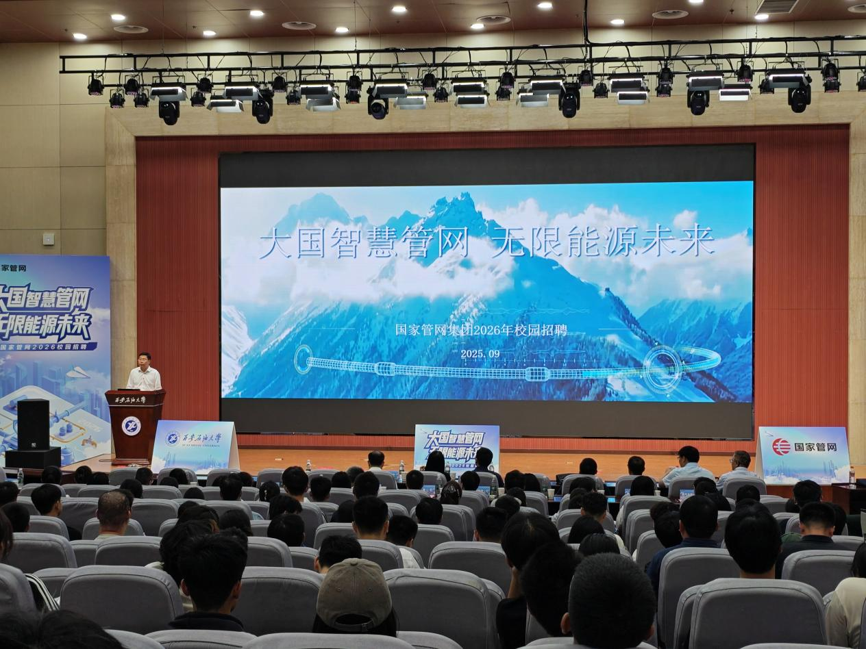 9月16日下午,國家石油天然氣管網(wǎng)集團有限公司2026屆畢業(yè)生校園招聘宣講會在我校鄠邑校區(qū)弘石報告廳隆重舉辦。國家管網(wǎng)集團相關代表,我校黨委委員、副校長種宇宏出席會議,各院(系)學生工作主要負責人,全體2026屆畢業(yè)班輔導員,畢業(yè)生代表400余人參加宣講活動。會議由學生工作部(處)部(處)長、就業(yè)創(chuàng)業(yè)指導中心主任王亮主持。