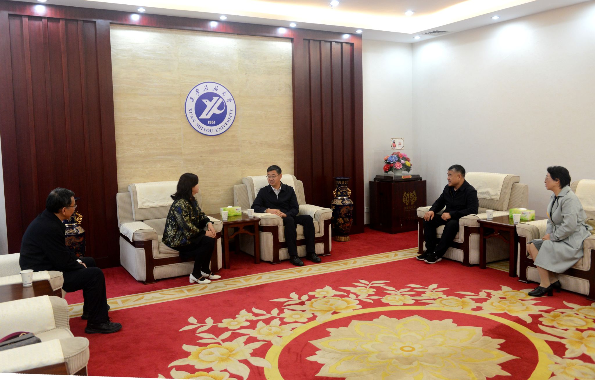 會(huì)前,校長王進(jìn)富、校黨委副書記張木在鄠邑校區(qū)貴賓室熱情接見了徐捷穎校友。王進(jìn)富代表學(xué)校對(duì)徐捷穎校友榮歸母校表示熱烈歡迎,對(duì)其心系母校發(fā)展、慷慨捐資反哺的善舉致以崇高敬意與誠摯感謝。王進(jìn)富強(qiáng)調(diào),學(xué)校將充分發(fā)揮石油特色學(xué)科與人才培養(yǎng)優(yōu)勢(shì),為校友企業(yè)發(fā)展提供精準(zhǔn)的智力支撐與優(yōu)質(zhì)的人才服務(wù),通過深化校企協(xié)同合作,實(shí)現(xiàn)資源互通、優(yōu)勢(shì)互補(bǔ),攜手推動(dòng)雙方在各自領(lǐng)域?qū)崿F(xiàn)更高質(zhì)量發(fā)展。