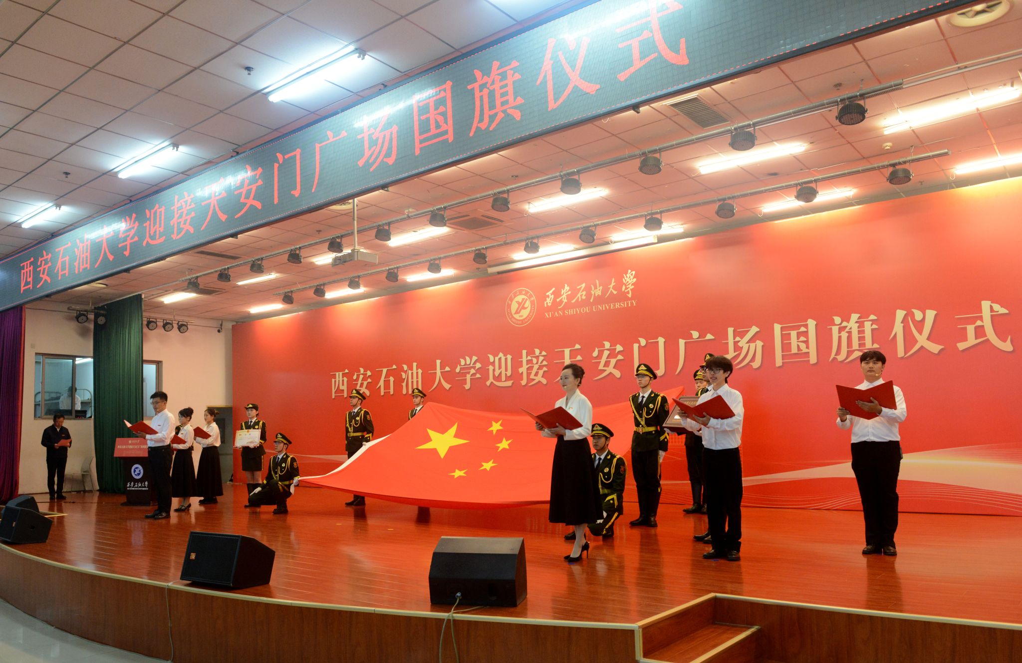 10月12日,時值西安石油大學74周年校慶日,我校在鄠邑校區(qū)騰輝大學生活動中心舉行迎接天安門廣場國旗儀式。一面曾于2021年10月12日,暨我校建校70周年校慶日,在天安門廣場升掛過的國旗,經(jīng)天安門地區(qū)管委會批準贈予學校。全體校領(lǐng)導、處科級干部代表、民主黨派代表、校友代表及師生代表共計600余人參加儀式,儀式由副校長種宇宏主持。