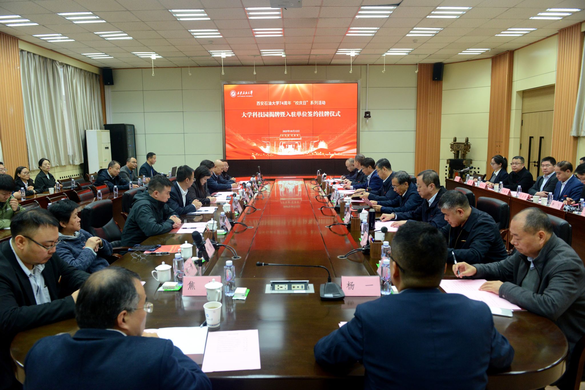 10月12日下午,在建校74周年之際,西安石油大學(xué)科技園揭牌暨入駐單位簽約掛牌儀式在我校雁塔校區(qū)舉行。校長王進富,副校長蘇文甫、張榮軍出席儀式,行業(yè)相關(guān)企業(yè)代表與學(xué)校相關(guān)職能部門、學(xué)院負責(zé)人及師生代表參加活動。儀式由校黨委副書記張木主持。