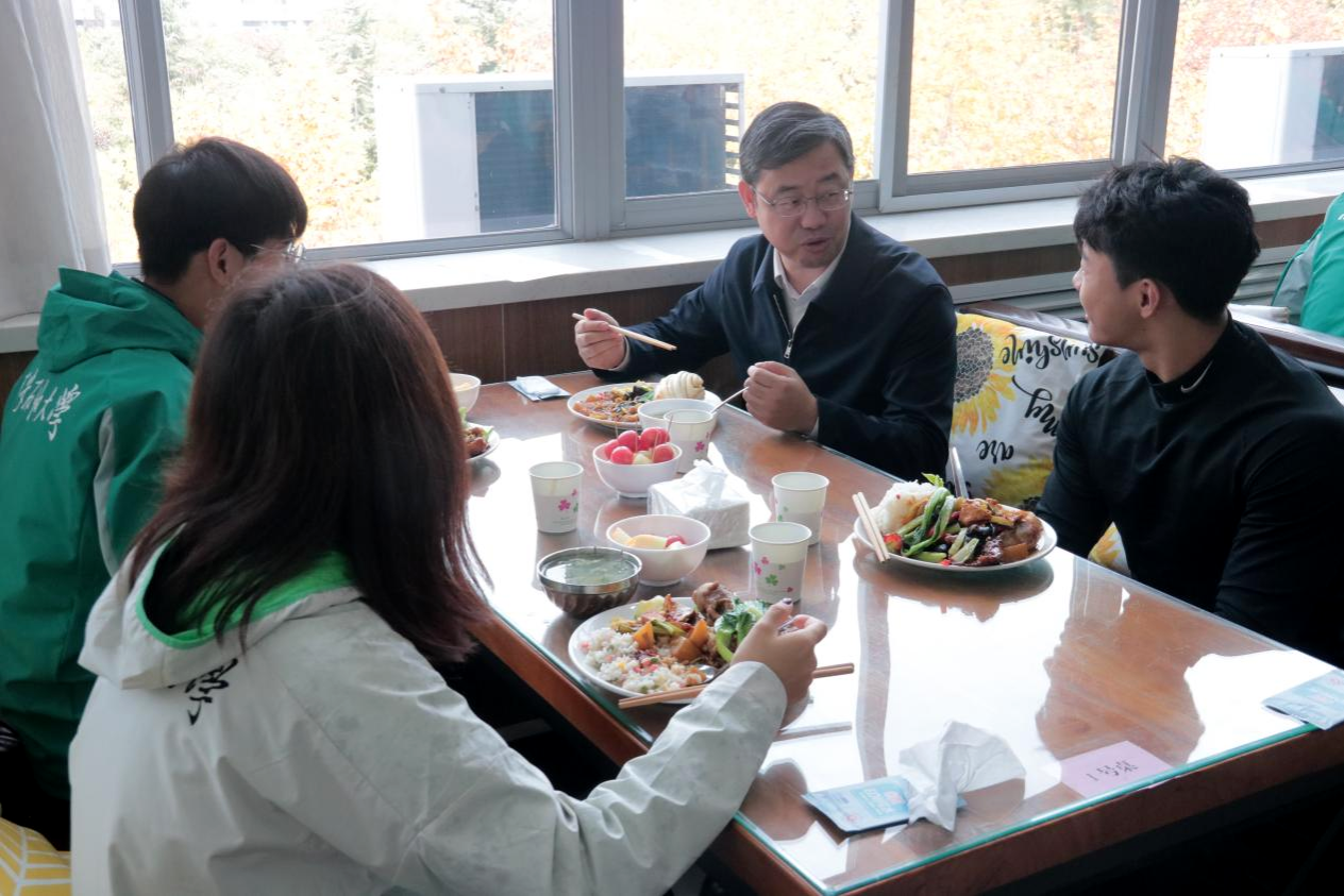 儀式結(jié)束后,校領(lǐng)導(dǎo)以及各相關(guān)職能部門和學(xué)院負責人與運動員代表共同舉行了“師生午餐會”,并向同學(xué)們贈送了紀念品。餐桌上,與會各位老師與學(xué)生們親切交流,詢問運動訓(xùn)練和在校生活情況,積極關(guān)心和回應(yīng)同學(xué)們近期關(guān)注和遇到的各類問題,在學(xué)習(xí)、就業(yè)、生涯規(guī)劃等方面給予同學(xué)們很多建議。大家紛紛表示,校領(lǐng)導(dǎo)及老師們的關(guān)懷讓他們倍感溫暖,未來將以更優(yōu)異的成績回報母校。
