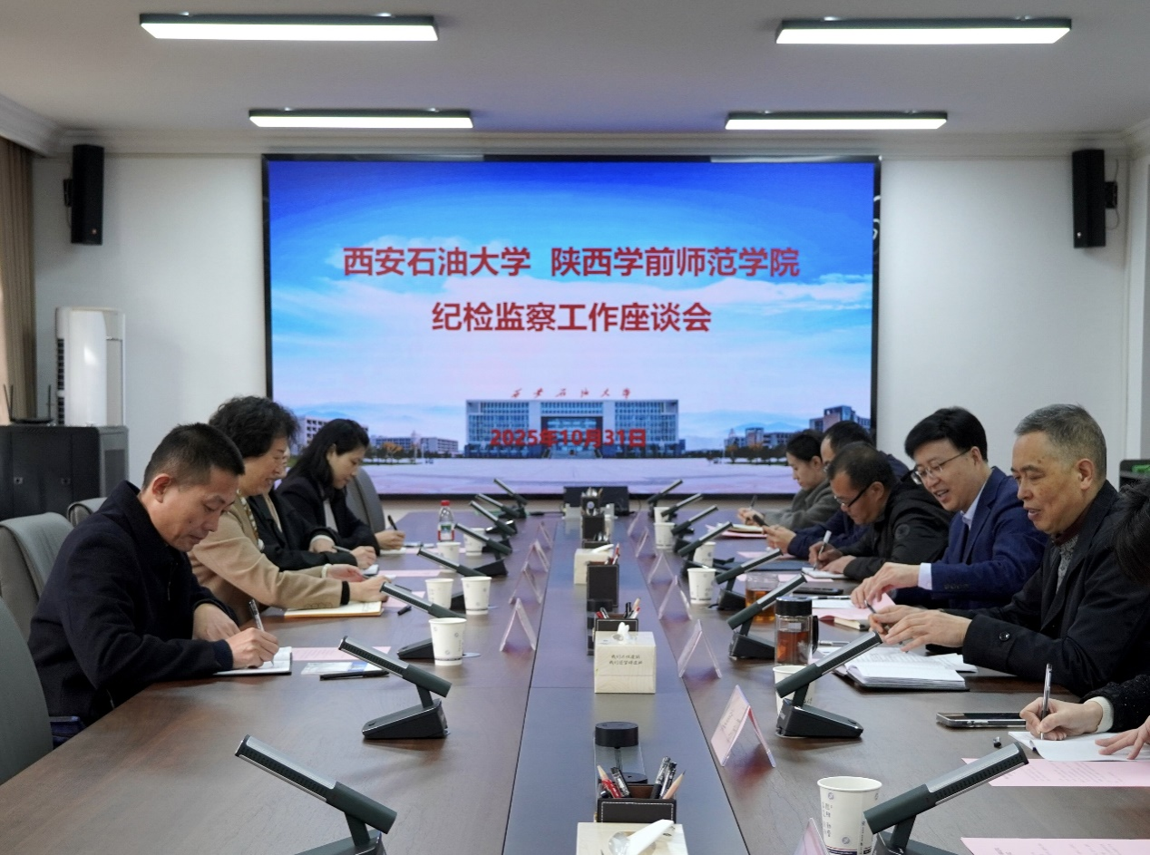 趙瓊對我校的熱情接待表示感謝,并對陜西學(xué)前師范學(xué)院的基本情況和紀檢監(jiān)察工作有關(guān)情況作了簡要介紹。她表示,西安石油大學(xué)紀檢監(jiān)察工作成效顯著、富有特色。希望兩校紀檢監(jiān)察機構(gòu)進一步加強溝通協(xié)作、拓寬視野、創(chuàng)新思路,不斷提升紀檢監(jiān)察工作質(zhì)效。
