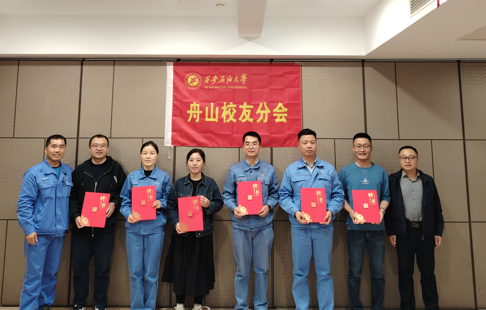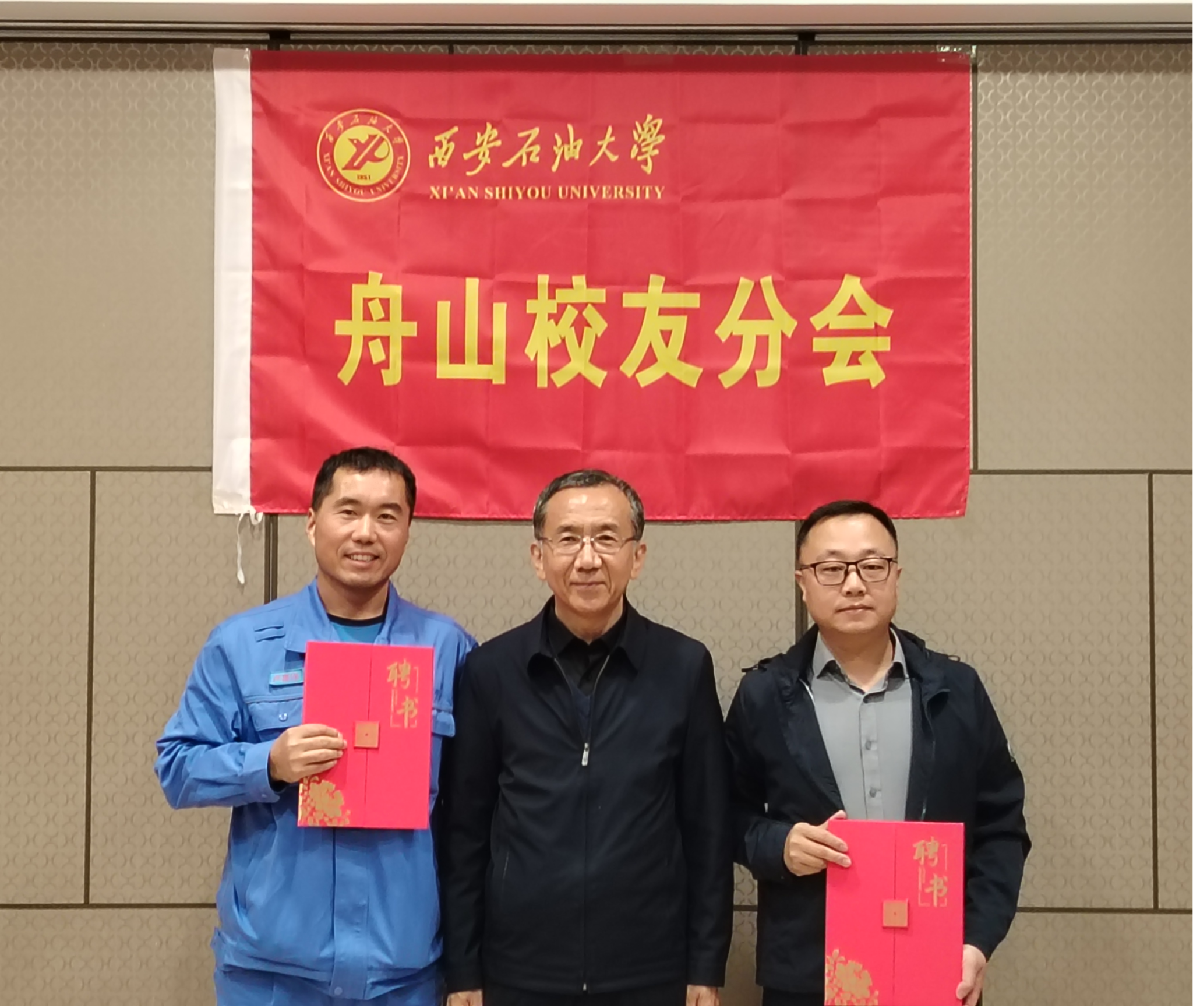 會上,張木向舟山校友分會會長、秘書長頒發(fā)了聘書;張榮軍向舟山校友分會授牌;覃彪宣讀了《關于成立西安石油大學舟山校友分會的批復》。盧喜洋向舟山校友分會副會長和副秘書長頒發(fā)了聘書。我校2008屆化學工程與工藝專業(yè)校友代兵代表舟山校友分會籌委會作了籌備工作報告。