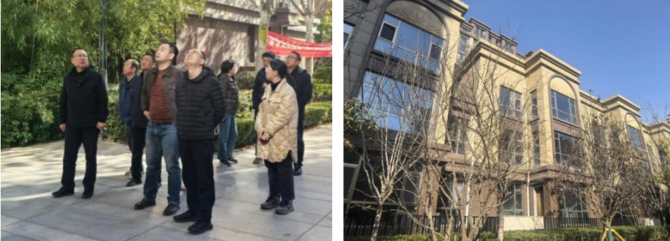 當日上午,考察組一行先后前往明珠匯博林項目與西北大學第一醫(yī)院進行實地考察,詳細查看了兩個項目外墻的施工工藝、材料質量及后期維護情況,直觀評估了不同材料在實際工程應用中的性能表現。針對項目外墻出現的脫落、明顯色差等共性問題進行了深入討論,避免類似問題在后續(xù)學校建設項目中重現。