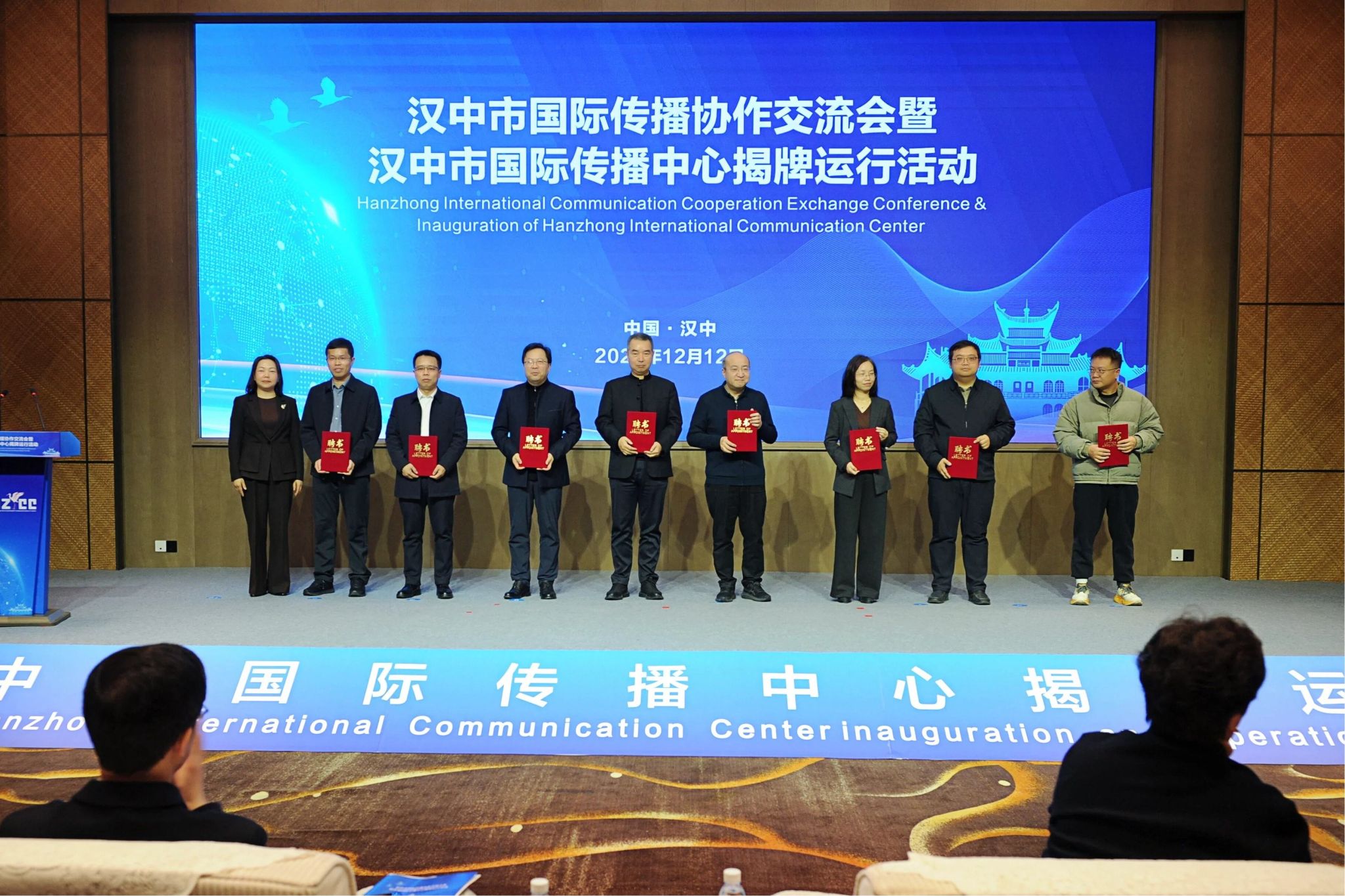 會上,漢中市委常委、宣傳部部長王紅艷為陜西國際傳播中心主任王冬、西安交通大學(xué)新聞與新媒體學(xué)院領(lǐng)軍學(xué)者陳紅兵教授、中國日報(bào)社陜西記者站站長秦峰,中央廣播電視臺陜西總站記者閆星光和我校黨委宣傳部副部長趙喜軍等代表頒發(fā)“漢中市國際傳播顧問”聘書。