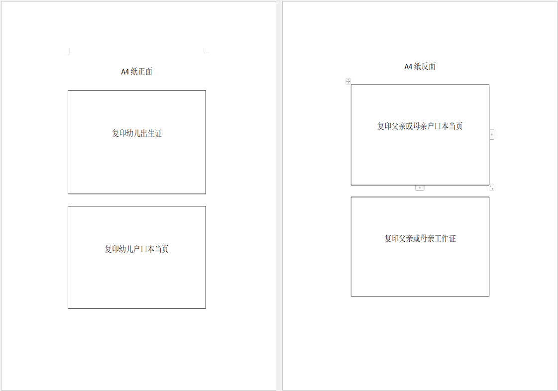 辦理入園手續(xù)時,家長需攜幼兒出生證明原件及復(fù)印件、幼兒戶口本當頁復(fù)印件、父親或母親戶口本當頁復(fù)印件、父親或母親本人工作證復(fù)印件(以上資料請?zhí)崆笆褂肁4紙依次進行雙面復(fù)印,復(fù)印模板附后)。