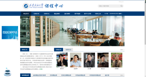 課程中心網(wǎng)站包含:名師在線、名師論壇、精品課程、通識(shí)課程、教學(xué)視頻、教學(xué)大講堂和專題紀(jì)錄等欄目。該網(wǎng)站現(xiàn)已提供12個(gè)教學(xué)名師的課程、154個(gè)精品課程通識(shí)課程,以及1977個(gè)課程相關(guān)視頻。同時(shí),課程中心網(wǎng)站為師生提供綜合檢索功能,以方便師生查詢與課程相關(guān)的信息。