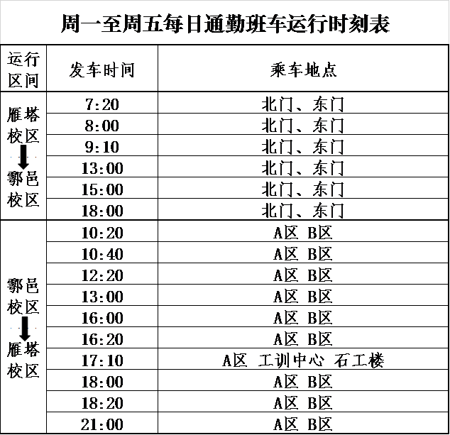 關(guān)于恢復(fù)雁塔校區(qū)通勤班車乘車點的通知