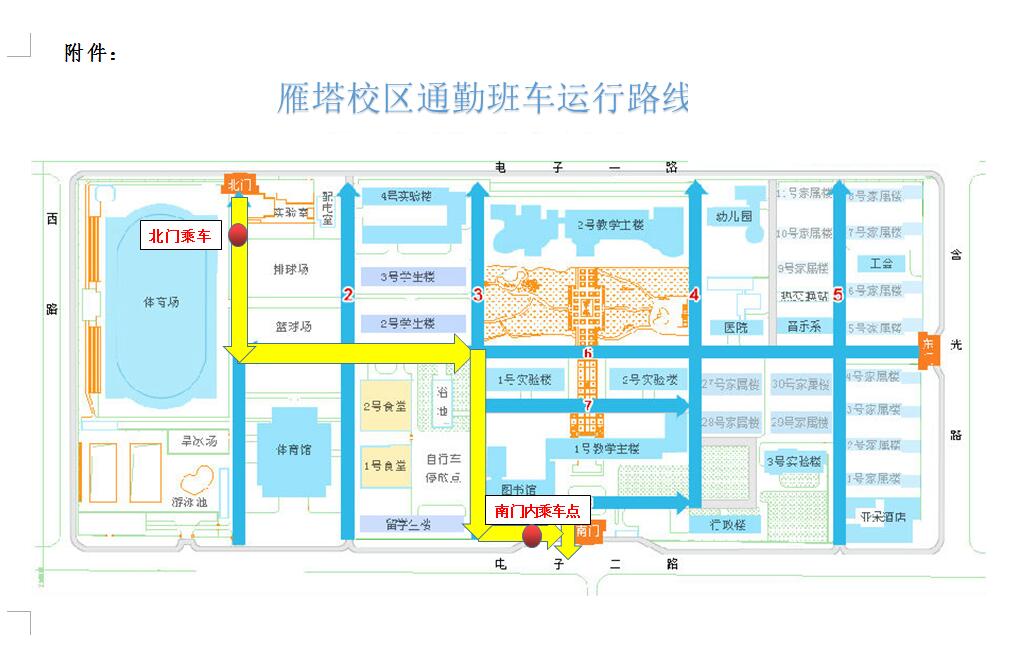 附:雁塔校區(qū)通勤班車運(yùn)行路線圖