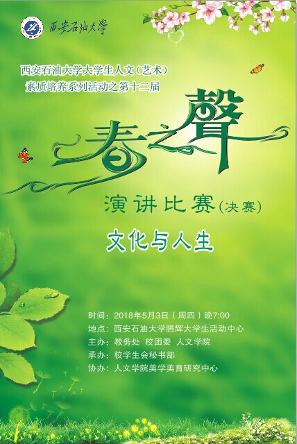 西安石油大學(xué)第十二屆“春之聲”演講比賽(決賽)通知