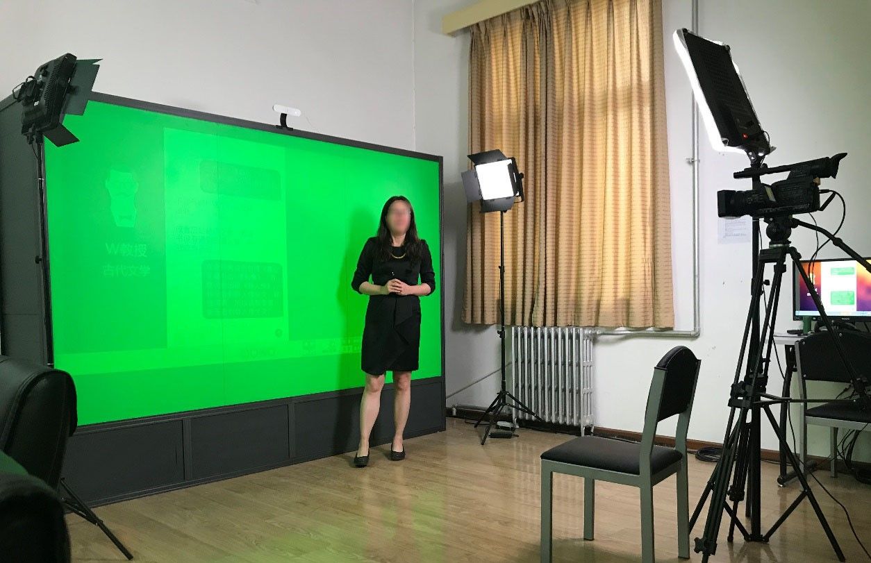 微課系統(tǒng)包含錄播主機(jī)、高清攝像機(jī)、86寸交互式大屏、燈光、回監(jiān)電視、麥克風(fēng)等,利用廣播級(jí)摳像技術(shù),配合老師準(zhǔn)備的PPT課件,就可以將老師人像結(jié)合在場(chǎng)景中。拍攝效果類似老師在觸摸大屏上講課,利用虛擬合成的方式,解決了觸摸大屏和人物亮度不一致,摒除了觸摸屏色調(diào)發(fā)藍(lán),發(fā)黃等現(xiàn)象。微課系統(tǒng)擁有PPT課件疊加、人像合成等微課制式,老師可隨時(shí)在上面涂寫標(biāo)注,所錄出的課件生動(dòng)絢麗,自帶多種場(chǎng)景模板。