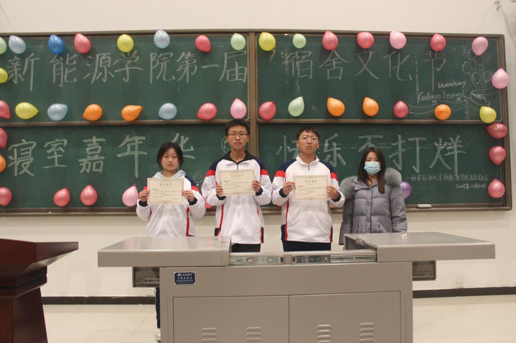 12月10日晚,新能源學院首屆宿舍文化節(jié)決賽暨閉幕式在鄠邑校區(qū)天工樓115室舉辦。本次比賽由學院團委、學生會指導老師盧筱佳,2022級輔導員秦瑩穎,以及學生會主席團成員擔任評委,2023級全體學生參加此次活動。