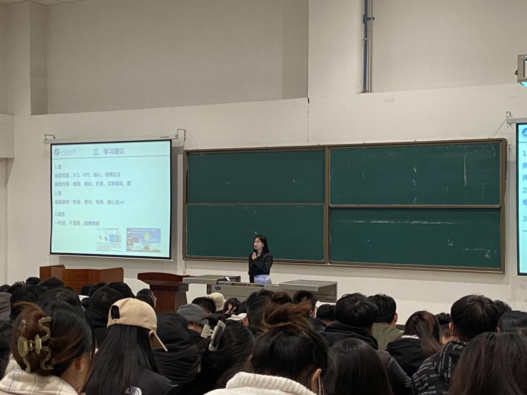 隨后,接葉楠同學(xué)從個(gè)人成績(jī)、學(xué)術(shù)成果、科研項(xiàng)目和綜合能力以及學(xué)習(xí)建議五個(gè)方面進(jìn)行經(jīng)歷和經(jīng)驗(yàn)分享,強(qiáng)調(diào)要端正學(xué)習(xí)態(tài)度,樹(shù)立正確的學(xué)習(xí)規(guī)劃,不僅要專注于學(xué)習(xí)專業(yè)課程,還要積極參加各種學(xué)科比賽,在比賽中不斷開(kāi)拓視野,積累經(jīng)驗(yàn),在競(jìng)爭(zhēng)中成長(zhǎng),激發(fā)潛力。她還建議同學(xué)們?cè)谡撐牡陌l(fā)表過(guò)程中,要從讀、寫、精煉三個(gè)方向去下功夫。劉勇同學(xué)從課程學(xué)習(xí)、科研競(jìng)賽和社會(huì)實(shí)踐三個(gè)方面分享了獲得國(guó)獎(jiǎng)的經(jīng)驗(yàn)。他談到,課程學(xué)習(xí)是重中之重,是從事科學(xué)研究的基礎(chǔ),千萬(wàn)不要掛科。他還號(hào)召同學(xué)們積極參加石工、儲(chǔ)運(yùn)和海工大賽,搭建良好的團(tuán)隊(duì),敢于創(chuàng)新。