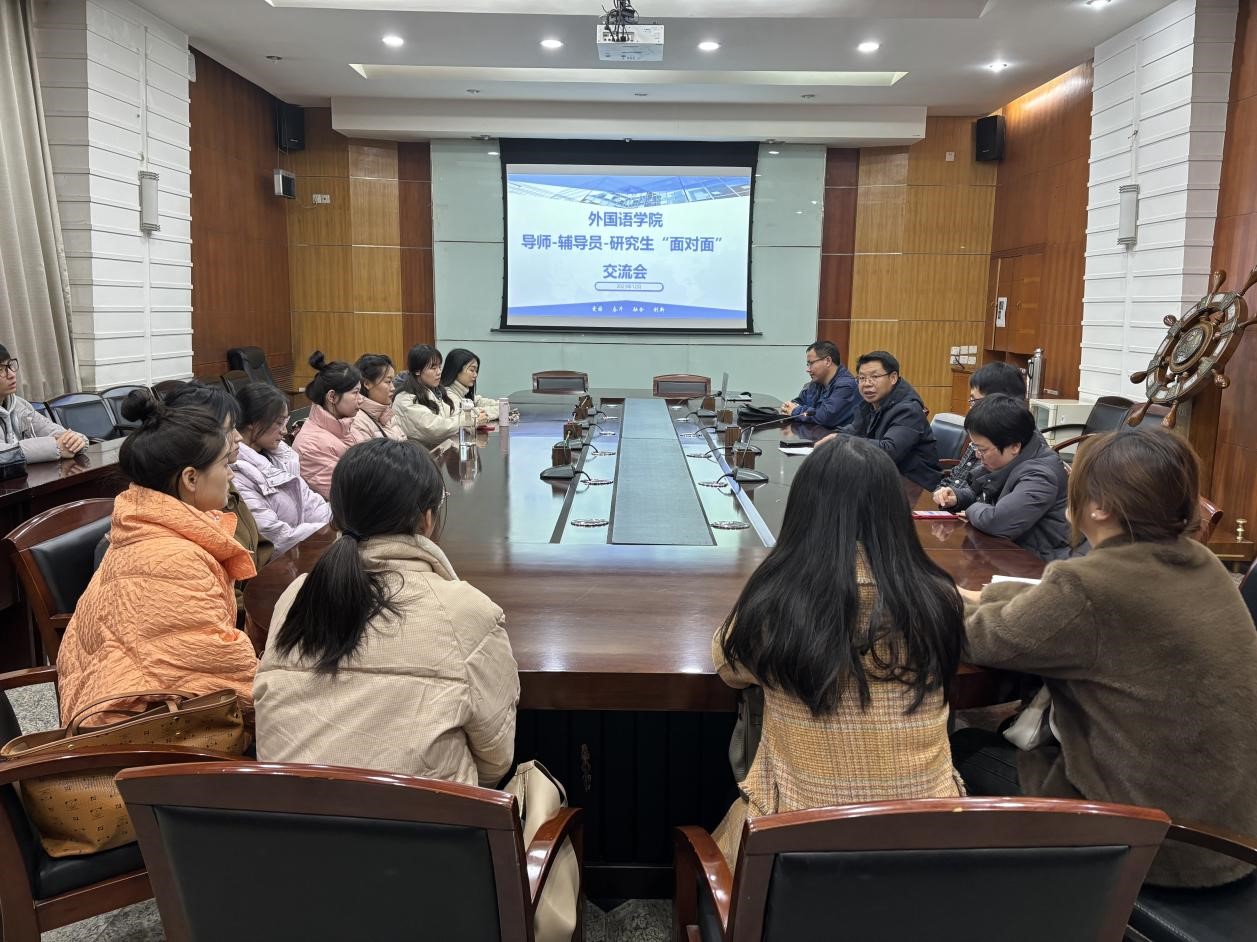 為落實立德樹人根本任務(wù),搭建研究生導(dǎo)師與輔導(dǎo)員協(xié)同育人平臺,充分保障研究生綜合素質(zhì)全面發(fā)展。12月5日下午,外國語學(xué)院在雁塔校區(qū)第四會議室召開“研究生導(dǎo)師-輔導(dǎo)員-研究生”面對面交流會。學(xué)院導(dǎo)師代表陳柯、高鵬鵬、鄧林、輔導(dǎo)員張靚及15名研究生代表參加,副書記王業(yè)青主持交流會。