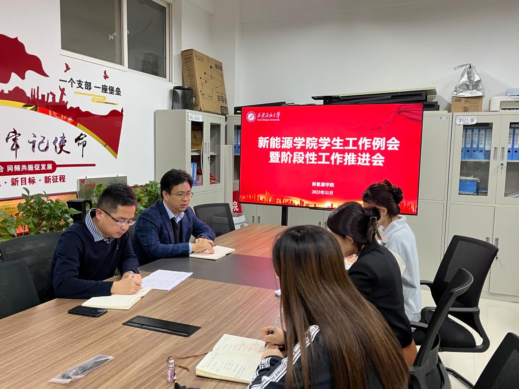 為了進一步優(yōu)化學生教育管理服務(wù)工作,推動學院學風建設(shè)邁向新臺階,11月29日晚,新能源學院學生工作例會暨階段性工作推進會在天工樓223室召開,會議由學院黨委書記宋海洋主持,各年級輔導員參會。