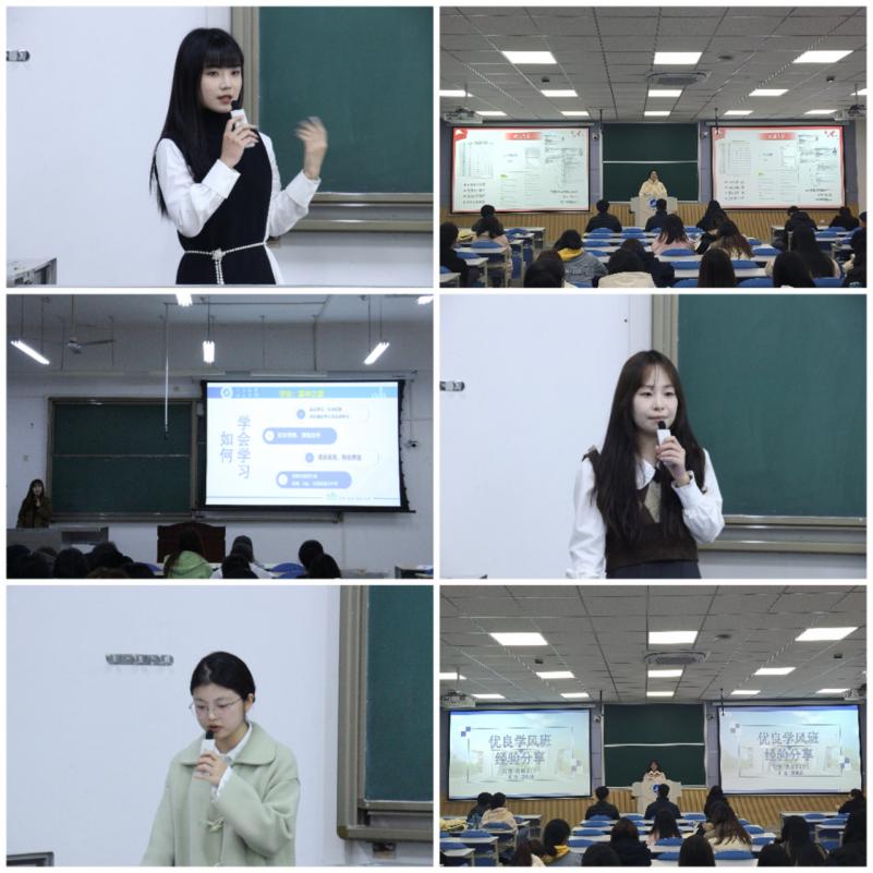 一是組建隊伍聚合力。經(jīng)濟管理學(xué)院著力打造“1+N”支先鋒隊伍,即1支優(yōu)秀班集體隊伍和“推免學(xué)生”、“國獎獲得者”、“優(yōu)秀學(xué)習(xí)標兵”等N支先進個人隊伍,不斷強化隊伍建設(shè),打磨先鋒事跡材料,總結(jié)優(yōu)秀集體、個人的先進經(jīng)驗,形成可復(fù)制的經(jīng)驗,不斷樹立典型,強化榜樣引領(lǐng)作用。11月1日—2日在博覽樓教室舉辦了“經(jīng)驗共分享,交流促成長”國家獎學(xué)金、中石油獎學(xué)金獲得者經(jīng)驗交流會。國家獎學(xué)金獲得者董亦潔、鄭棋中,中石油獎學(xué)金獲得者高穎芝、晏瑞園、常笑笑結(jié)合個人學(xué)習(xí)經(jīng)驗,從專業(yè)課程學(xué)習(xí)、科學(xué)研究、學(xué)科競賽、實踐實習(xí)等方面為低年級同學(xué)答疑解惑。11月15日,在博思樓321教室舉辦推免學(xué)生經(jīng)驗交流分享會,2020級各專業(yè)推免生受邀分享經(jīng)驗,2021級、2022級學(xué)生代表200余人參加了交流分享會。推免同學(xué)結(jié)合自身推免經(jīng)歷,從保研政策、時間安排、目標規(guī)劃、自我定位、專業(yè)選擇和研究生支教團選拔條件等進行了介紹,針對同學(xué)們普遍關(guān)心的如何平衡學(xué)業(yè)與工作、實踐、科研和競賽等方面的問題與參會同學(xué)進行了深入的交流分享。11月15日,在博覽樓108智慧大講堂開展班級建設(shè)經(jīng)驗交流會,優(yōu)秀班集體代表人力2001班、人力2002班、商務(wù)2002班、智財2201班班干部代表分別就班級思想引領(lǐng)、文化建設(shè)、學(xué)風(fēng)建設(shè)等方面進行經(jīng)驗分享,充分發(fā)揮朋輩引領(lǐng)和榜樣示范作用。二是專題培訓(xùn)提能力。大學(xué)英語四、六級考試是對大學(xué)生的英語能力進行客觀、準確測量的有效方式,在大學(xué)生專業(yè)學(xué)習(xí)、考研就業(yè)、出國留學(xué)等方面起到重要作用。學(xué)院將四六級通過率作為強學(xué)風(fēng)的重要抓手。自11月1日開始,每周三下午組織2022級、2023級學(xué)生開展英語四六級培訓(xùn),邀請外國語學(xué)院武絨老師專題講授四六級單詞積累、閱讀理解、備考技巧等專題課程,不斷提高學(xué)生英語聽說讀寫能力。11月22日,在博思樓205舉辦考研英語專題講座,為2024屆考研學(xué)生在英語作文的寫作、語料的準備等方面進行專題輔導(dǎo)。