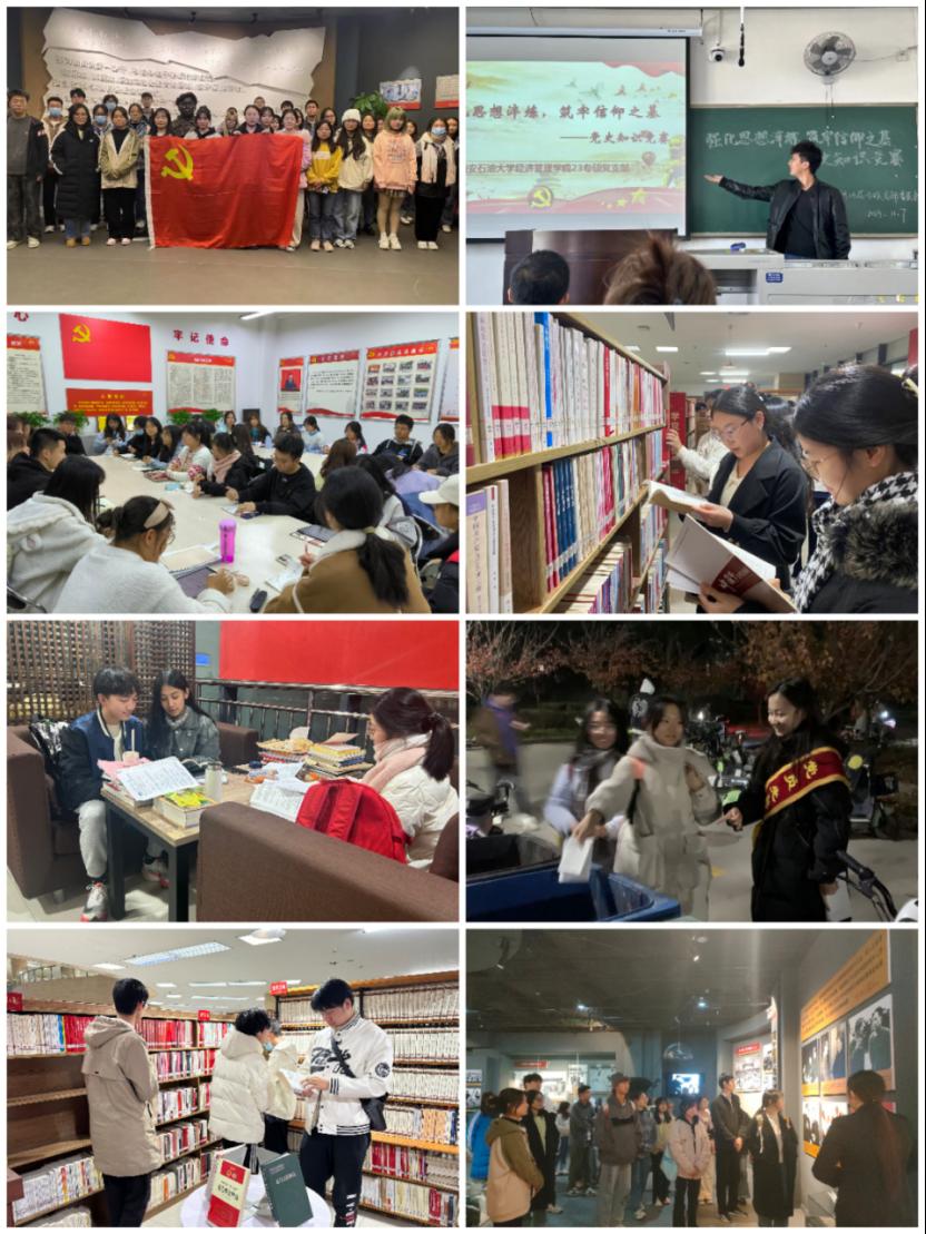 一是樹立形象當先鋒。11月8日—12日,學(xué)院開展了黨員一對一幫扶活動,學(xué)生黨員干部積極幫助同學(xué)加強思想政治學(xué)習(xí),主動宣傳優(yōu)秀共產(chǎn)黨員的模范事跡,與幫扶學(xué)生談心談話,及時了解學(xué)生情況,在學(xué)習(xí)、工作和生活上有針對性地幫助和引導(dǎo)。二是學(xué)習(xí)思想明事理。11月17日,學(xué)院邀請學(xué)校鐵人研究中心首席專家郭崗彥老師,舉辦“感悟鐵人魅力,汲取成長力量”鐵人精神教育及課程思政專題講座。會議采用微信直播平臺,學(xué)院師生2000余人參加活動。講座的開展幫助學(xué)生對鐵人精神的內(nèi)涵有了更深層次的認識和感悟,激發(fā)了學(xué)生愛國、愛黨的熱情和奮發(fā)有為的斗志,立志傳承紅色基因,爭做時代新人。11月9日—10日,學(xué)院組織各學(xué)生黨支部召開主題為“品讀紅色經(jīng)典,傳承紅色精神”的紅色經(jīng)典書目閱讀分享會活動,邀請各支部黨員代表分享日常生活中閱讀紅色經(jīng)典書目的感想感悟,以充分調(diào)動支部成員閱讀紅色經(jīng)典書目的積極性。11月8日—15日學(xué)院各學(xué)生黨支部開展“從鐵人精神中汲取青春奮進力量”主題黨日活動,組織各支部成員前往鐵人館參觀學(xué)習(xí),重溫黨史憶初心,汲取力量共奮進。三是亮明身份展風(fēng)采。學(xué)院組織學(xué)生黨員同志深入教學(xué)樓、圖書館了解學(xué)生學(xué)習(xí)情況,引導(dǎo)學(xué)生前排就坐、認真聽講,養(yǎng)成良好的學(xué)習(xí)習(xí)慣等;深入學(xué)生公寓,對宿舍內(nèi)務(wù)進行檢查,針對不同宿舍的情況分別幫助內(nèi)務(wù)整理;深入食堂、餐廳提醒同學(xué)們切勿浪費糧食,積極宣傳“一粥一飯,當思來之不易”的勤儉節(jié)約思想。