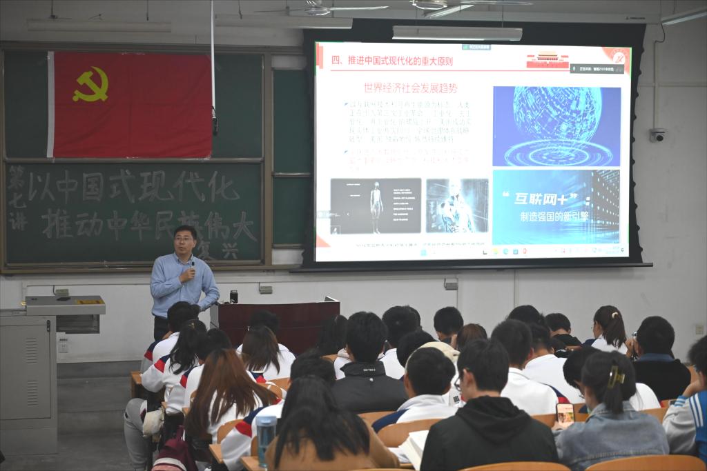 1121日晚,電子工程學院第24期入黨積極分子培訓班第七講在鄠邑校區(qū)博思樓221教室順利進行。本次黨課的主題為《以中國式現(xiàn)代化推動中華民族偉大復(fù)興》,由西安石油大學黨委學生工作部(處)部(處)長王亮老師擔任主講,我院202名入黨積極分子參加了此次黨課。