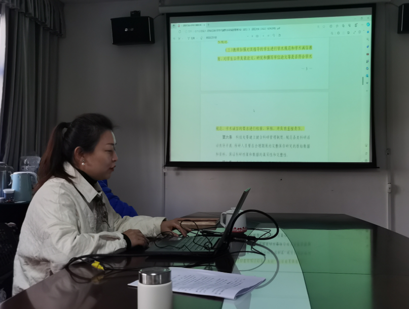 系副主任張帆領(lǐng)學(xué)了《西安石油大學(xué)學(xué)術(shù)道德與科研誠信管理辦法(試行)》(西石大科[2022]182號)等十余個關(guān)于學(xué)術(shù)道德和科研誠信的相關(guān)文件,對文件內(nèi)容進行了解讀。她要求全體教職工一定要遵守學(xué)術(shù)規(guī)范、堅守學(xué)術(shù)誠信,加強學(xué)術(shù)道德自律,營造良好的學(xué)術(shù)道德氛圍。