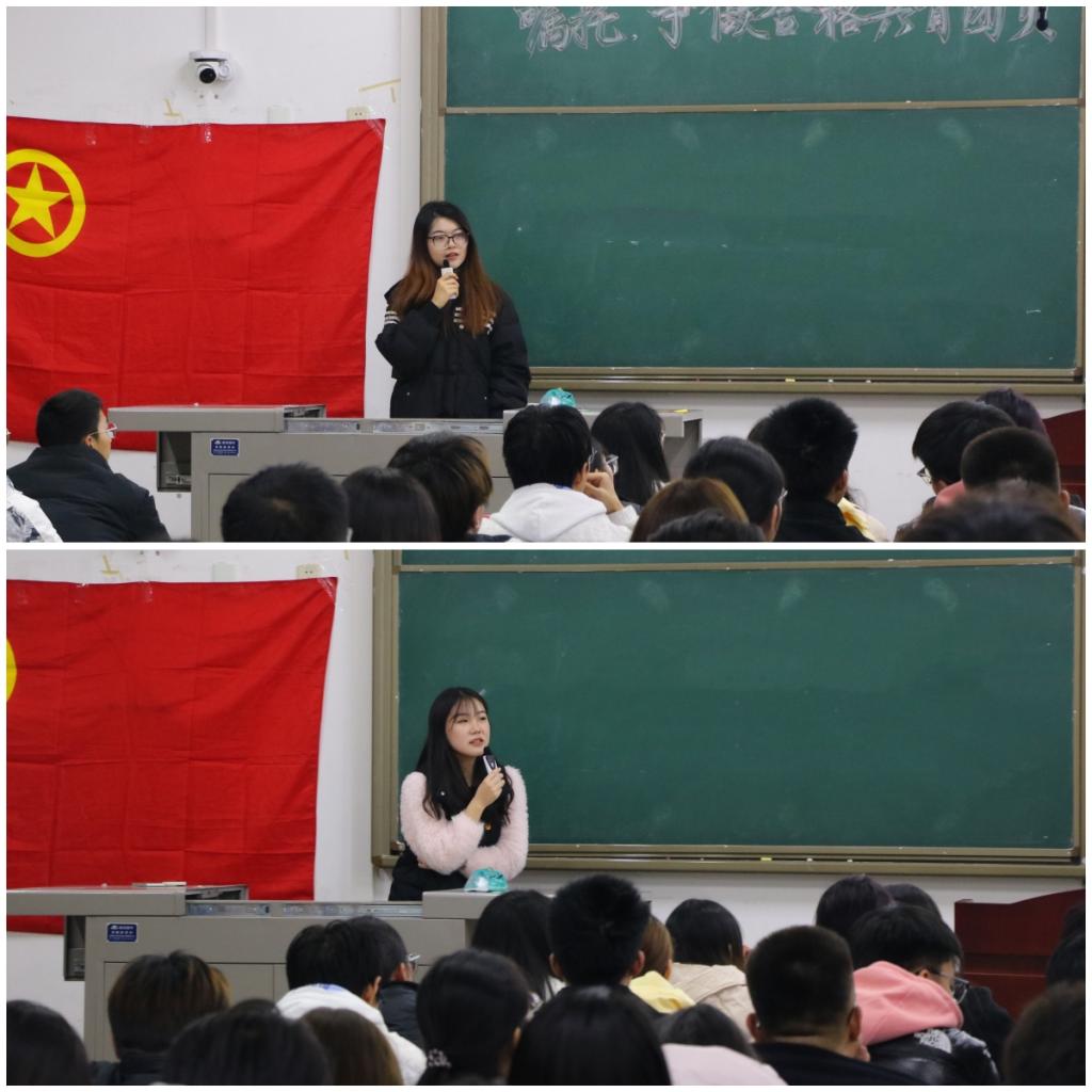 11月19日,校團委副書記孫浩哲在鄠邑校區(qū)博思樓104教室,以《牢記習(xí)近平總書記殷殷囑托,爭做合格共青團員》為題,對《中國共產(chǎn)主義青年團發(fā)展團員工作細則》《中國共產(chǎn)主義青年團紀律處分條例(試行)》進行了詳細講解,并圍繞“對青年工作理解”和“習(xí)近平總書記提出對青年工作要求感觀”兩個方面,闡述新時代青年要學(xué)會適應(yīng)際遇和抓住機緣,發(fā)揮自身特色優(yōu)勢,做到思想積極,樹立遠大理想。