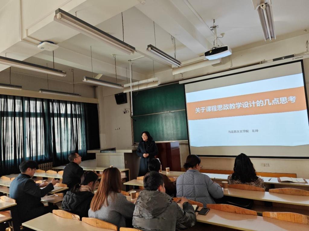 與會專家左玲副教授首先闡述了思政課程與課程思政的關系。思政課作為鑄魂育人主渠道,教育引導學生正確認識世界和中國發(fā)展大勢、正確認識中國特色、正確認識時代責任和歷史使命。課程思政則是將知識傳授與價值引導相結合,讓各類課程與思想政治理論課同向同行,形成協(xié)同效應,實現(xiàn)“如鹽入水”的育人效果。隨后左玲副教授講授了課程思政的教學設計技巧,要做到引題有張力、破題有導向、解體有邏輯、扣題有亮點等。最后左玲副教授結合自身參加“課程思政大練兵”的實踐經(jīng)歷,與老師們分享了心得體會。