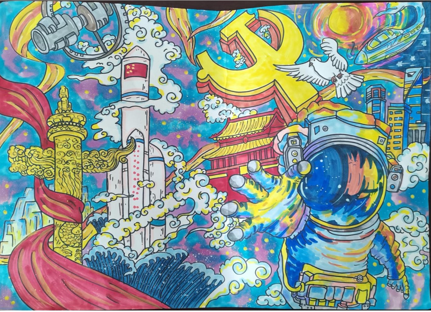 一等獎獲得者王雯清同學(xué)表示:《以詩慶賀》這幅作品表達(dá)了我對祖國母親深深的祝福和歌頌,作為祖國的兒女們,我們要攜手努力,共創(chuàng)更加美好的未來!