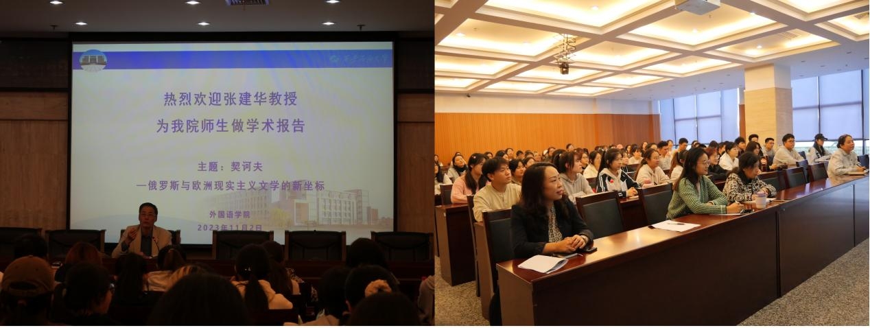 為提升師生專業(yè)素養(yǎng),拓展師生學(xué)術(shù)視野,進(jìn)一步促進(jìn)學(xué)院學(xué)科建設(shè)與發(fā)展。11月2日下午,外國語學(xué)院特別邀請(qǐng)北京外國語大學(xué)二級(jí)教授、博士生導(dǎo)師張建華教授開展了題為“契訶夫—俄羅斯與歐洲現(xiàn)實(shí)主義文學(xué)的新坐標(biāo)”的學(xué)術(shù)講座。外國語學(xué)院俄語系師生共100余人聆聽了本次講座。講座由副院長劉輝主持。