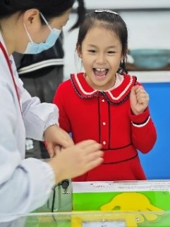 活動(dòng)當(dāng)天,家長(zhǎng)和小朋友們?cè)趯W(xué)生志愿者的組織引導(dǎo)下有序地參觀了各個(gè)實(shí)驗(yàn)室。教師志愿者對(duì)演示實(shí)驗(yàn)項(xiàng)目的原理、操作方法和注意事項(xiàng)進(jìn)行了詳細(xì)的講解和演示,引導(dǎo)小朋友們認(rèn)真觀察實(shí)驗(yàn)現(xiàn)象、提出問題、主動(dòng)探索,并指導(dǎo)大家親身體驗(yàn)各個(gè)實(shí)驗(yàn)項(xiàng)目。其中特斯拉放電、茹科夫斯基轉(zhuǎn)椅、錐體上滾、清潔能源、GPS全球定位系統(tǒng)演示儀、彩色影子等項(xiàng)目給大家留下了深刻的印象。在VR實(shí)驗(yàn)室,大家可以親身體驗(yàn)虛擬現(xiàn)實(shí)技術(shù),感受科技的魅力。活動(dòng)為參觀者僅打開了切身體驗(yàn)科學(xué)知識(shí)的窗口,領(lǐng)略到物理的魅力和科技的創(chuàng)新,也培養(yǎng)了孩子們樹立探索科學(xué)奧秘,立志科學(xué)報(bào)國(guó)的理想。