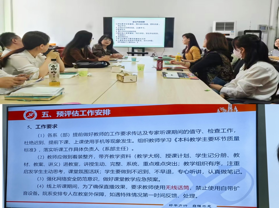 在教學(xué)工作會(huì)議環(huán)節(jié),大學(xué)外語(yǔ)第一教學(xué)部主任李雪梅就近期教學(xué)工作及本科教育教學(xué)預(yù)評(píng)估和期中考試等工作作了詳盡安排。李雪梅指出,本科教學(xué)評(píng)估有利于規(guī)范教學(xué)管理,提升教學(xué)質(zhì)量,各位教師務(wù)必認(rèn)真學(xué)習(xí)評(píng)估“應(yīng)知應(yīng)會(huì)”手冊(cè),嚴(yán)格遵守并執(zhí)行各項(xiàng)教學(xué)規(guī)范和要求。