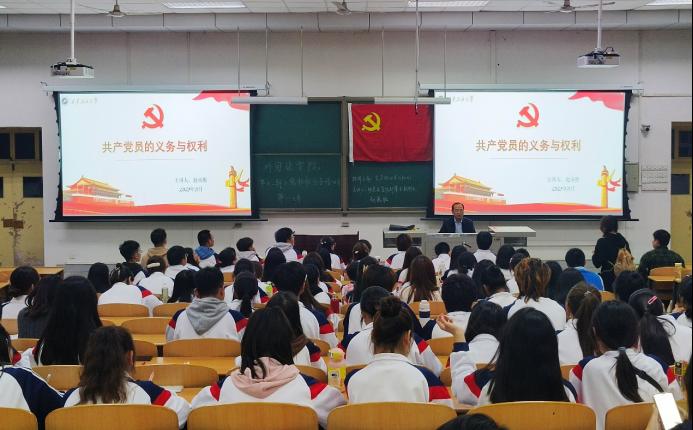 趙承勝以“共產(chǎn)黨員的義務(wù)與權(quán)利”為題,從“規(guī)定黨員義務(wù)和權(quán)利的意義”“黨員的義務(wù)”“黨員的權(quán)利”“義務(wù)和權(quán)利的辯證關(guān)系”四個方面展開授課,詳細(xì)講解了黨員“學(xué)習(xí)、實(shí)干、奉獻(xiàn)、守紀(jì)、組織、治黨、宗旨、道德”八個方面的義務(wù)及“政治、參政、議政、監(jiān)督、選舉、申辯、上訴、申訴”八個方面的權(quán)力,并結(jié)合黨章、黨規(guī)、黨紀(jì)和相關(guān)規(guī)定,以及自身多年的黨務(wù)工作經(jīng)驗(yàn)和豐富案例,解讀作為一名合格的黨員應(yīng)該如何履行自己的義務(wù)和權(quán)利。他強(qiáng)調(diào),作為一名入黨積極分子,要加強(qiáng)政治理論學(xué)習(xí),用馬克思主義中國化的理論成果武裝頭腦,深刻把握習(xí)近平新時代中國特色社會主義思想的核心要義。要在日常學(xué)習(xí)生活中,嚴(yán)格對照黨員標(biāo)準(zhǔn),充分發(fā)揮先鋒模范作用,吃苦在前,艱苦奮斗。要自覺遵守黨的紀(jì)律、法律法規(guī)、校規(guī)校紀(jì),服從組織安排,積極完成各項(xiàng)任務(wù)。