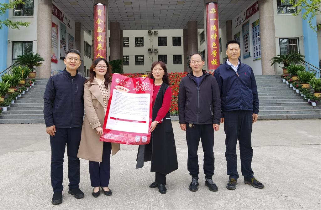 為了進(jìn)一步推進(jìn)我院“優(yōu)秀生源基地”建設(shè),加強(qiáng)學(xué)校和生源地中學(xué)的交流與合作,10月10日上午,外國語學(xué)院黨委書記田虹霞、教務(wù)處副處長陳熙、外國語學(xué)院副院長陳武、教學(xué)辦主任尹曉嬌一行四人前往城固縣第二中學(xué),為中學(xué)送去2023年招生喜報(bào)。城固縣第二中學(xué)副校長李小蘭、校長辦公室主任李紅軍代表中學(xué)接收喜報(bào)。