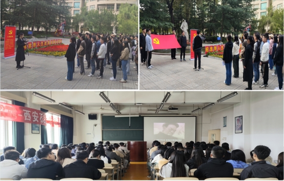活動伊始2021級學生黨員代表接葉楠同志帶領(lǐng)全體黨員們重溫了鐵人王進喜的英勇事跡。研2021級第四學生黨支部書記李高丞同志帶領(lǐng)全體黨員面向黨旗、面向鐵人王進喜雕像,高舉右手,重溫入黨誓詞,使全體黨員再次接受心靈的洗禮和思想的震撼。宣誓儀式結(jié)束后,宋興淼帶領(lǐng)前往第二教學樓1006教室共同觀看鐵人紀錄片。觀看過程中,在場的每一個人都被鐵人精神深深地感染。宋興淼號召大家要學習老一輩石油工人濃濃的革命情懷以及忘我的奉獻精神,一個鐵人前面走,千萬個鐵人跟上來,學鐵人、做鐵人,飲水思源、不忘初心,為當好標桿旗幟、為中華民族偉大復(fù)興貢獻自己的力量。