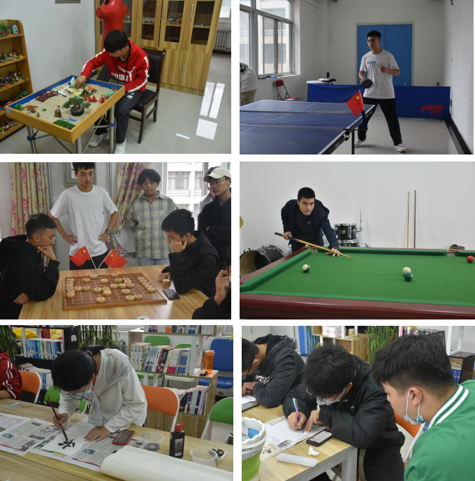 10月2日至10月6日,學(xué)院組織留校學(xué)生進(jìn)行了乒乓球比賽、臺(tái)球比賽、硬筆書(shū)法大賽、象棋比賽、五子棋比賽、模擬沙盤等文體活動(dòng)。通過(guò)各種比賽,讓更多同學(xué)走出宿舍、走進(jìn)操場(chǎng),增強(qiáng)體育鍛煉和團(tuán)隊(duì)協(xié)作意識(shí),增進(jìn)師生之間的交流和各民族同學(xué)之間的友誼,營(yíng)造了歡樂(lè)溫馨、積極向上的雙節(jié)氛圍。