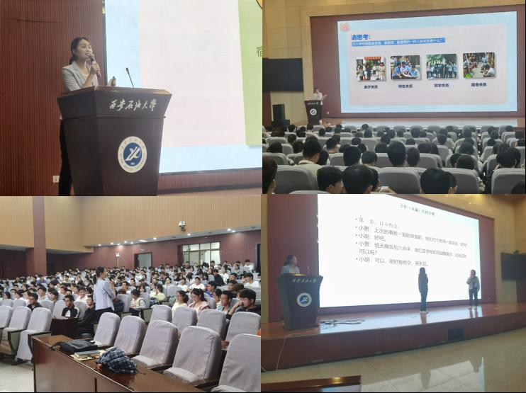 此次講座以“同一個(gè)屋檐下——宿舍里的人際關(guān)系”為題,趙老師從近年來各高校出現(xiàn)的宿舍人際關(guān)系問題的典型案例切入,強(qiáng)調(diào)了大學(xué)生宿舍關(guān)系對(duì)于學(xué)生心理健康發(fā)展的獨(dú)特意義。隨后從宿舍關(guān)系的重要性、表現(xiàn)類型、原因分析和具體對(duì)策四個(gè)方面全面、系統(tǒng)地進(jìn)行闡述,結(jié)合心理學(xué)理論,對(duì)實(shí)際案例進(jìn)行剖析,深入淺出地將心理健康知識(shí)傳遞給同學(xué)們。講座中,趙老師與現(xiàn)場同學(xué)積極互動(dòng),精彩的情景短劇與幽默風(fēng)趣的語言讓心理健康知識(shí)變得淺顯易懂,同學(xué)們認(rèn)真聆聽、受益匪淺。