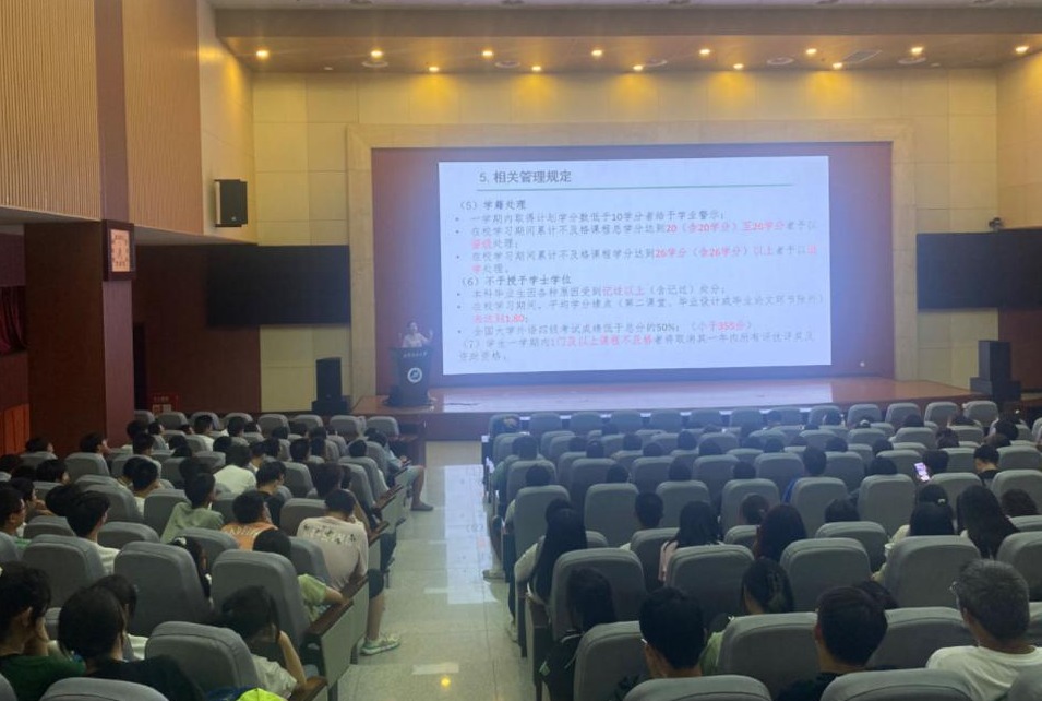 為促進(jìn)2023級(jí)新生更快適應(yīng)大學(xué)生活、制定合理目標(biāo),進(jìn)一步加強(qiáng)學(xué)生日常教育管理,學(xué)院召開2023級(jí)新生年級(jí)大會(huì),學(xué)生工作辦公室主任郭媛從“大學(xué)是什么”“大學(xué)的特點(diǎn)和意義”“大學(xué)規(guī)劃”“大學(xué)日常行為規(guī)范”四個(gè)方面向新生介紹了到大學(xué)之后應(yīng)及時(shí)轉(zhuǎn)變身份和習(xí)慣,盡快適應(yīng)大學(xué)生活,提前做好大學(xué)規(guī)劃,度過充實(shí)圓滿的大學(xué)生活。最后,郭老師帶領(lǐng)全體新生學(xué)習(xí)了《學(xué)生手冊(cè)》,針對(duì)學(xué)籍管理規(guī)定、公寓管理辦法、獎(jiǎng)助學(xué)金評(píng)定、學(xué)生在校期間的權(quán)利和義務(wù)、違紀(jì)處分辦法等有關(guān)學(xué)生切身利益的部分做了詳細(xì)解讀。