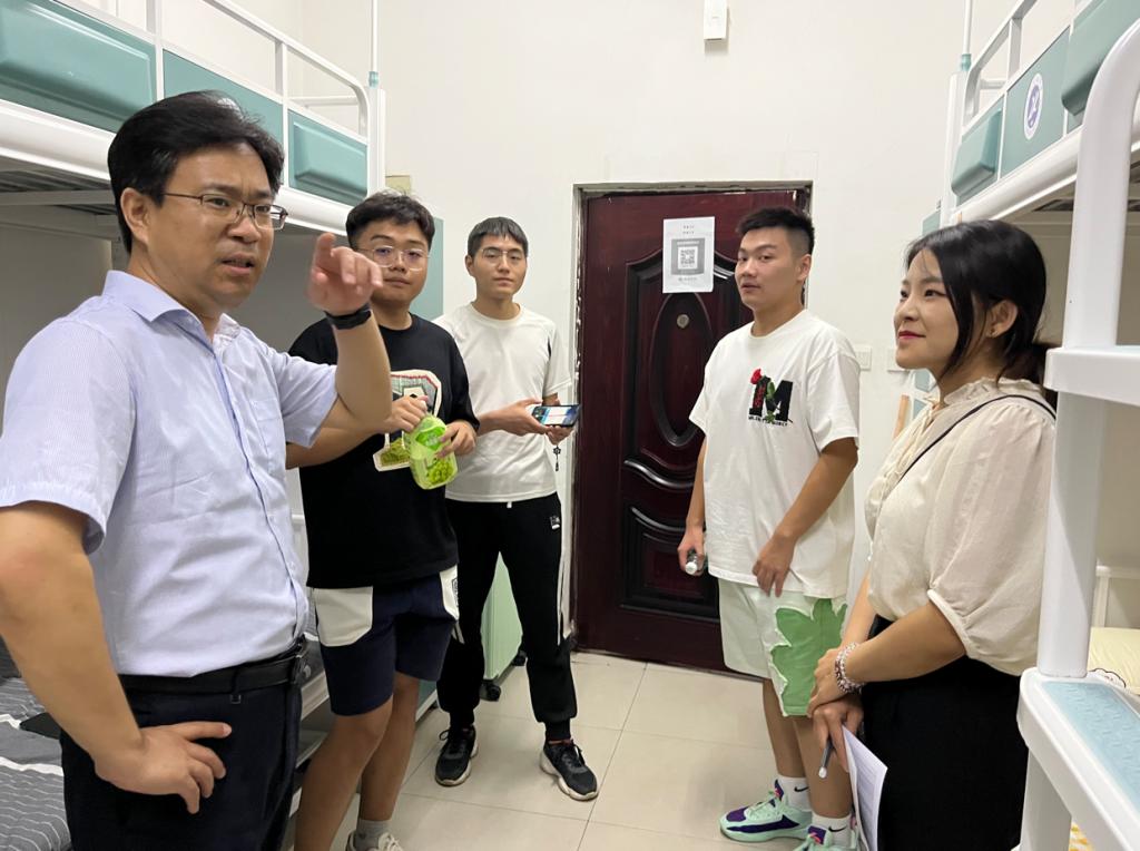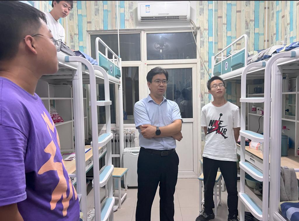 9月6日,在新生入校報(bào)到當(dāng)晚,學(xué)院黨委書記宋海洋、學(xué)生工作辦公室主任馬武軍、2023級輔導(dǎo)員盧筱佳深入新生宿舍,詳細(xì)了解新生的住宿和生活情況。在走訪過程中,宋海洋與新生進(jìn)行親切交談,從住宿飲食、生活習(xí)慣、發(fā)展規(guī)劃等多方面深入了解學(xué)生情況,詢問同學(xué)們的報(bào)到流程是否順利,關(guān)心同學(xué)們的入住體驗(yàn),并進(jìn)行現(xiàn)場溝通解決,幫助同學(xué)們盡快適應(yīng)新生活。宋海洋叮囑新生與同學(xué)之間要相互關(guān)心,相互幫助,盡快調(diào)整好狀態(tài)、適應(yīng)大學(xué)新環(huán)境,以良好的狀態(tài)迎接大學(xué)生活。